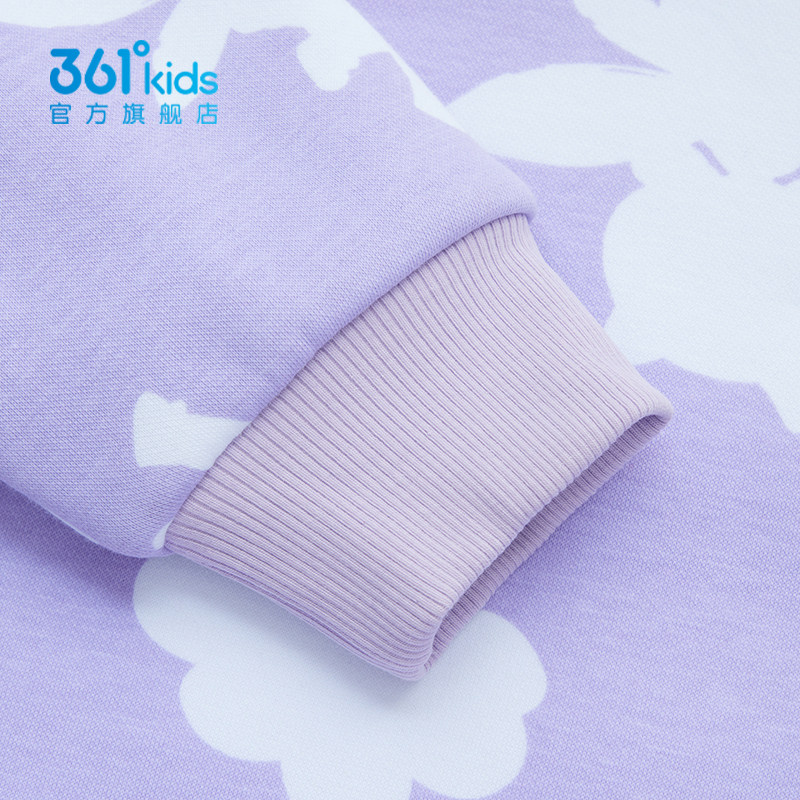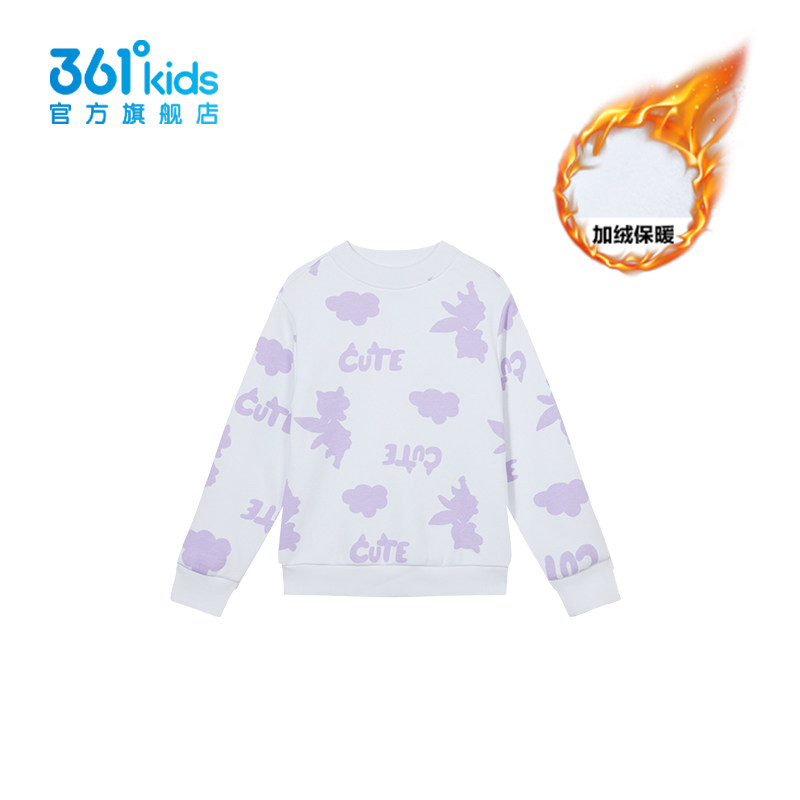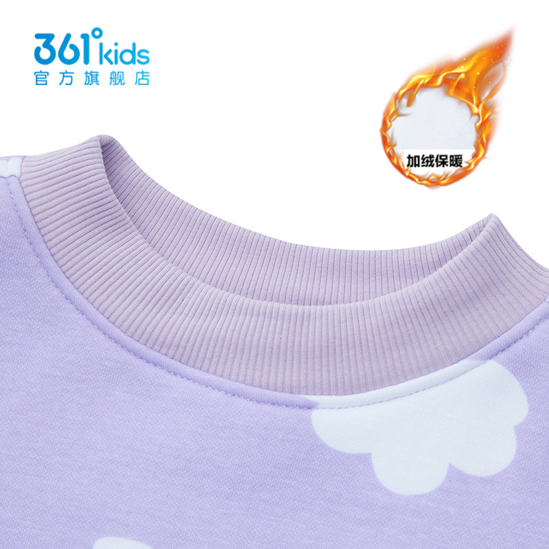 361度女童卫衣2026春季加绒保暖紫色卡通印花可爱上衣K62444302