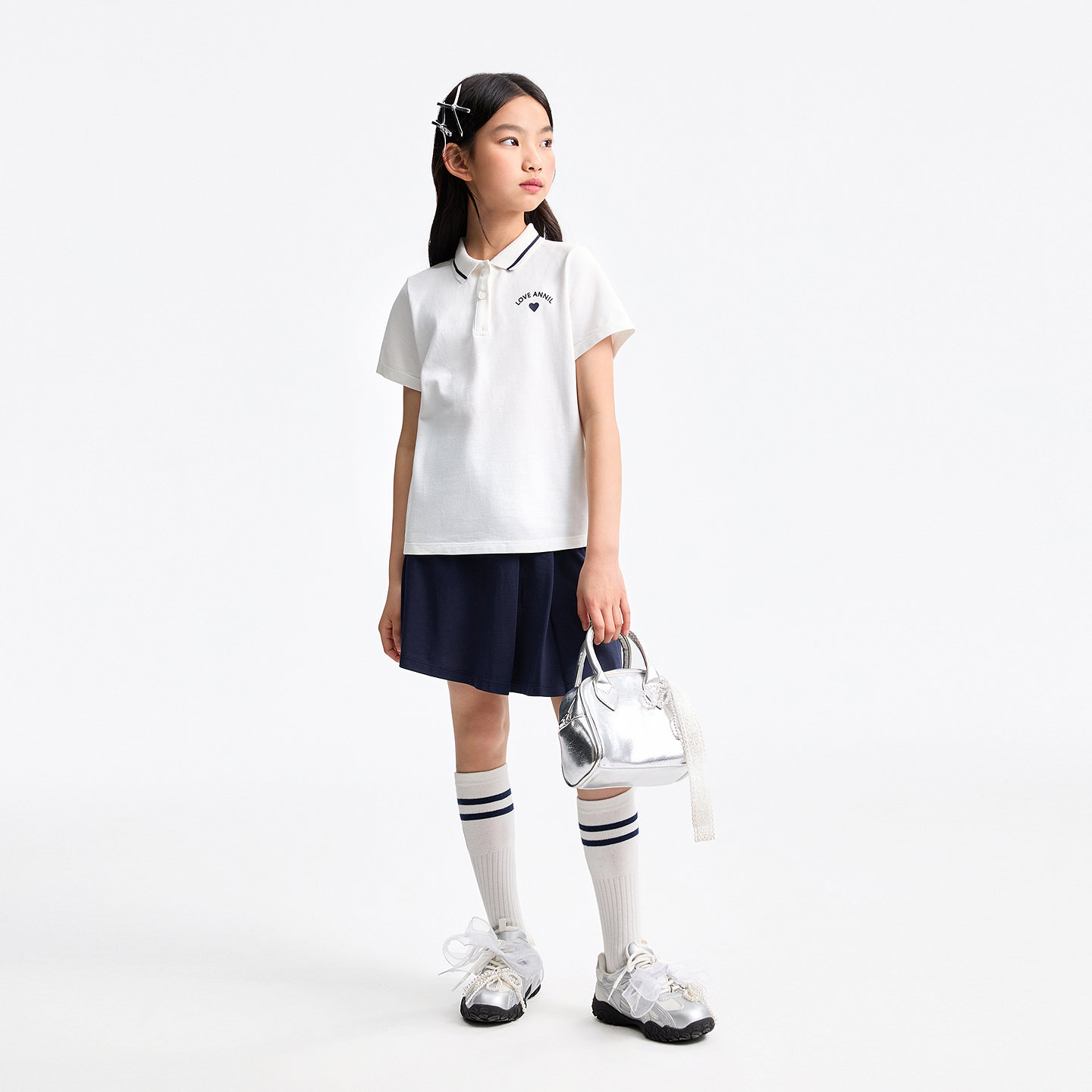 安奈儿童装女童套装2026夏运动风网球户外运动跑步套装POLO衫短裙