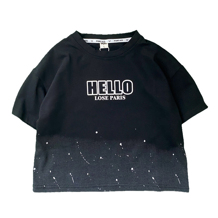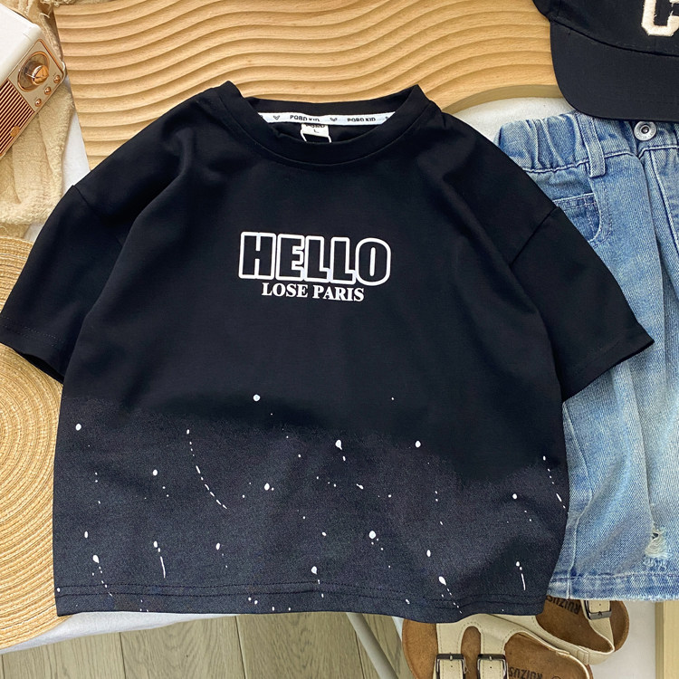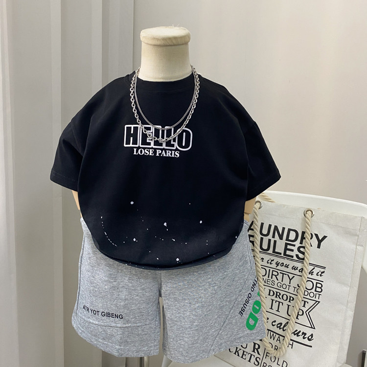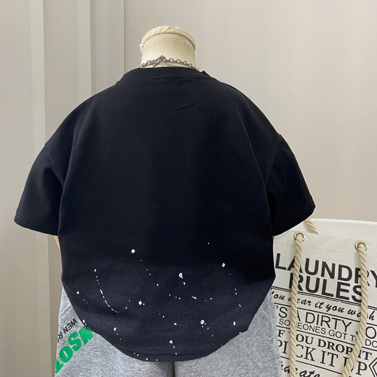 夏装男童短袖t恤2026新款男孩痞帅气时髦儿童上衣黑色中童装潮酷
