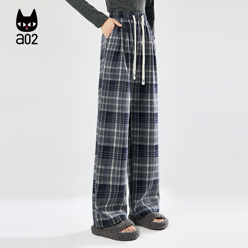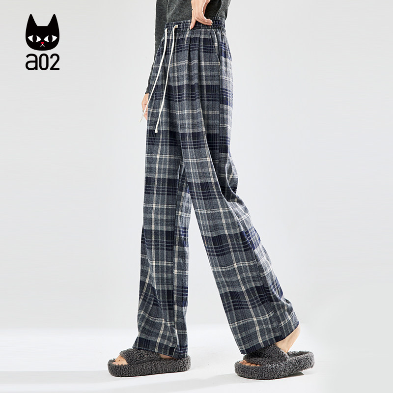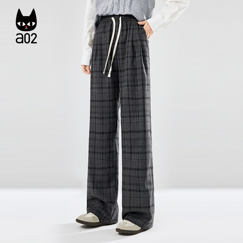 a02宽松格子裤子女款2026新款夏季薄款休闲长裤阔腿裤遮肉显瘦