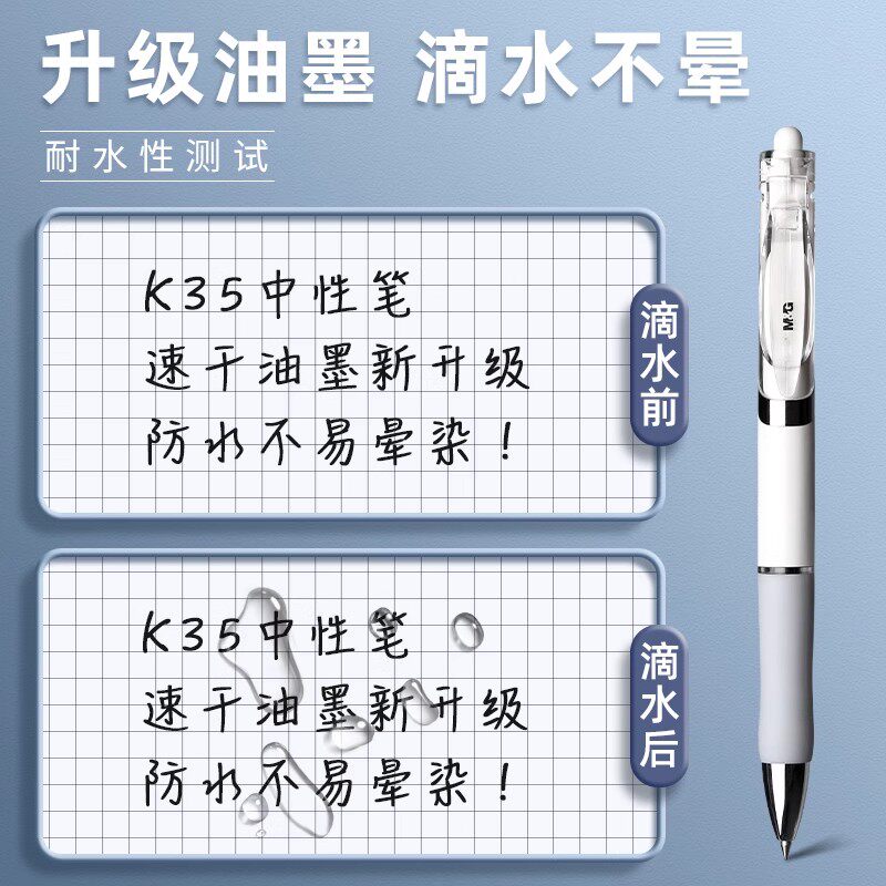 晨光按动中性笔水笔学生专用考试碳素黑色笔水性签字笔芯0.5mm按压式k35子弹头圆珠笔墨蓝黑红笔老师办公文具