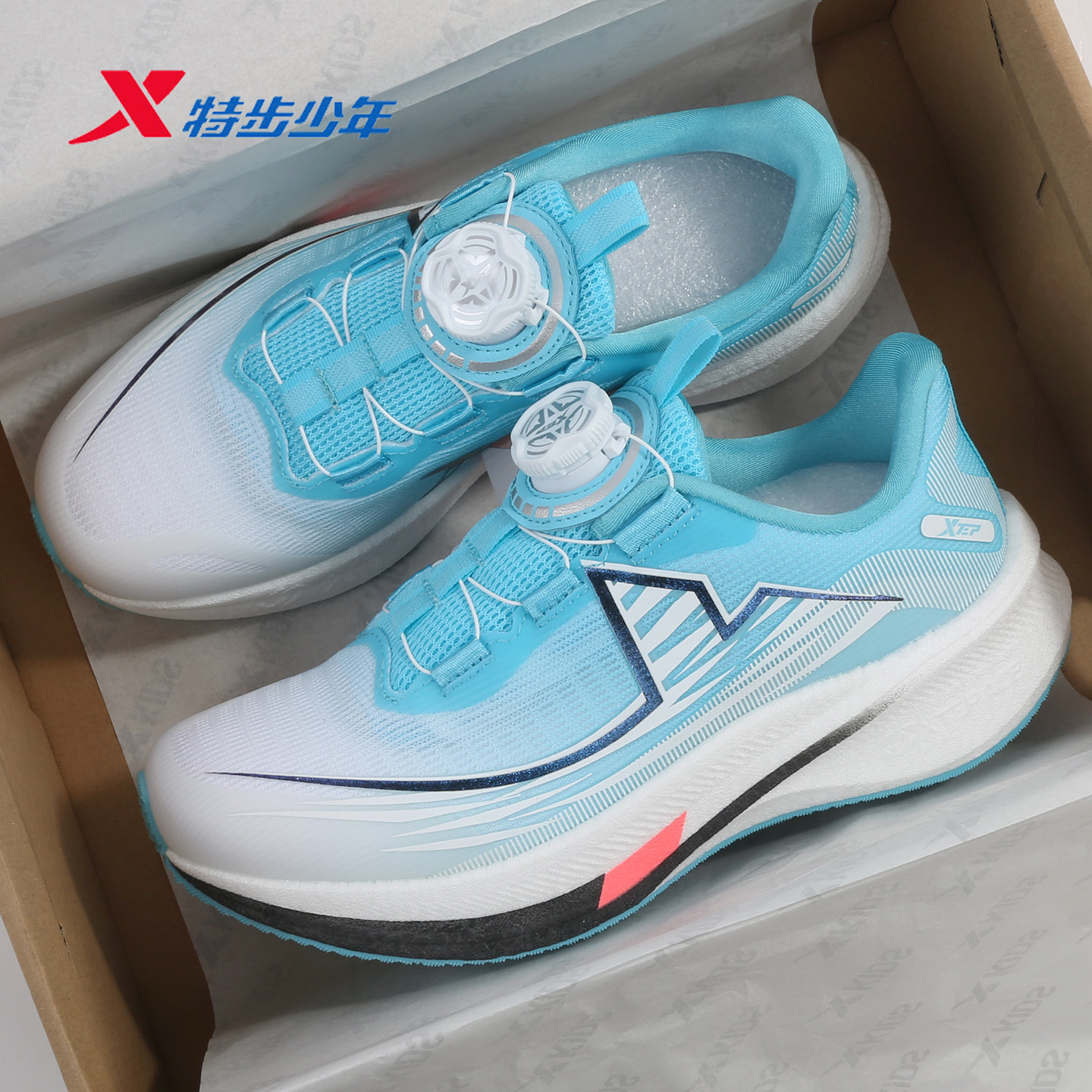 特步儿童男大童碳板跑步鞋2026春新款网面减震运动鞋674115114026