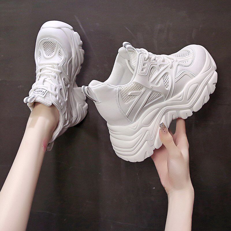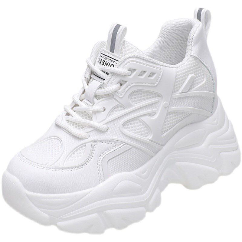 白色老爹鞋女夏季薄款2024新款透气网面厚底内增高8cm超火运动鞋