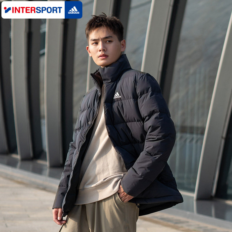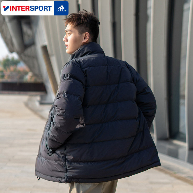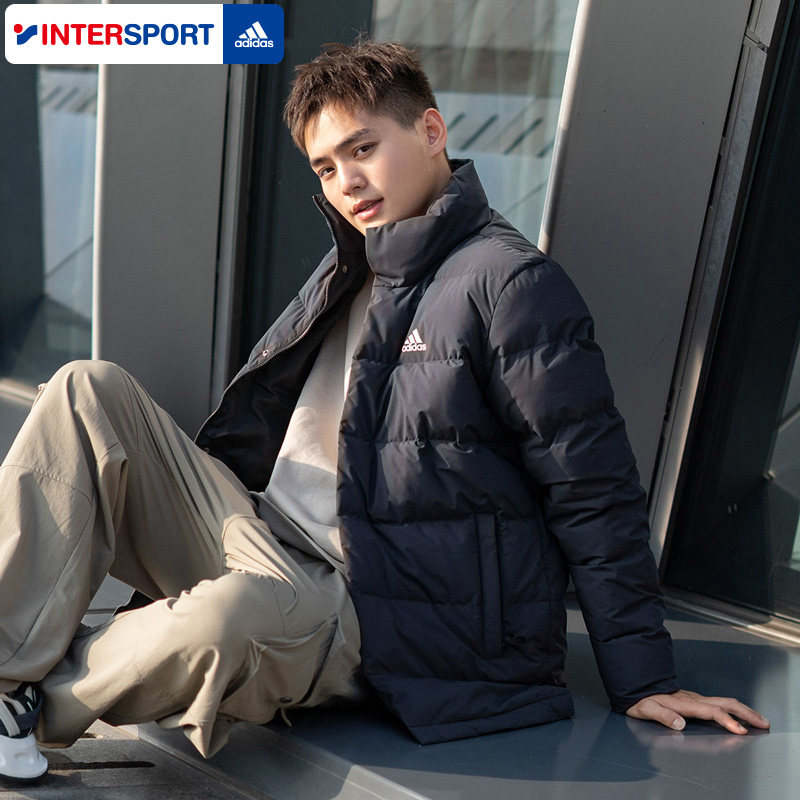 阿迪达斯官方正品男款羽绒服2026春季款黑色运动服立领羽绒男外套