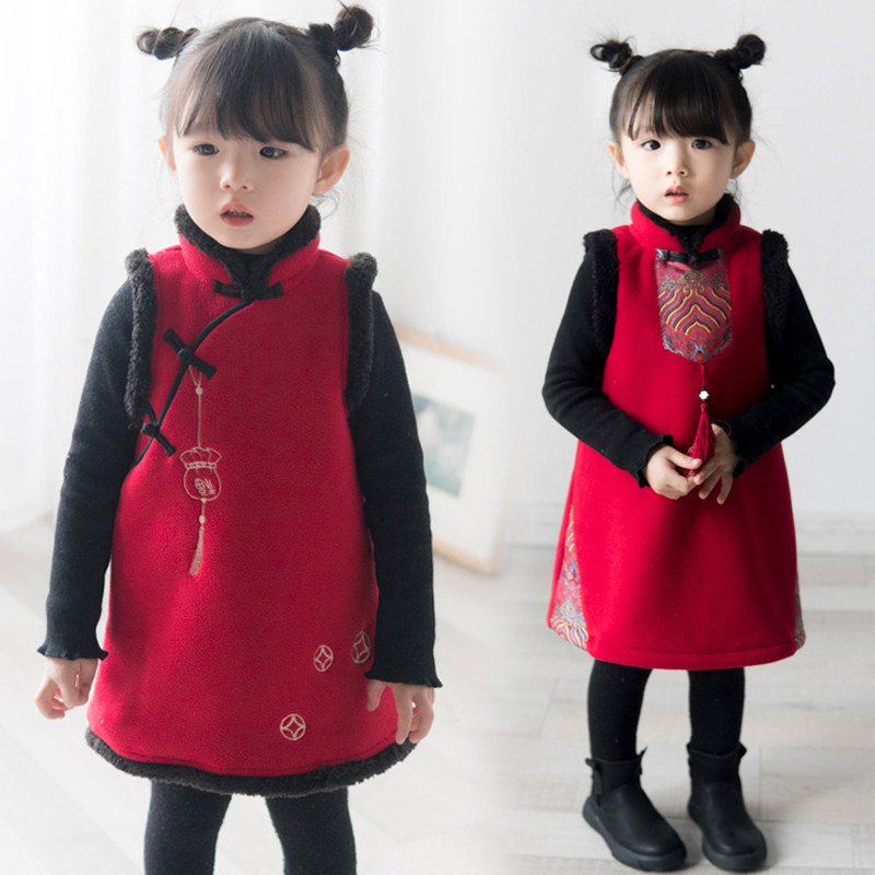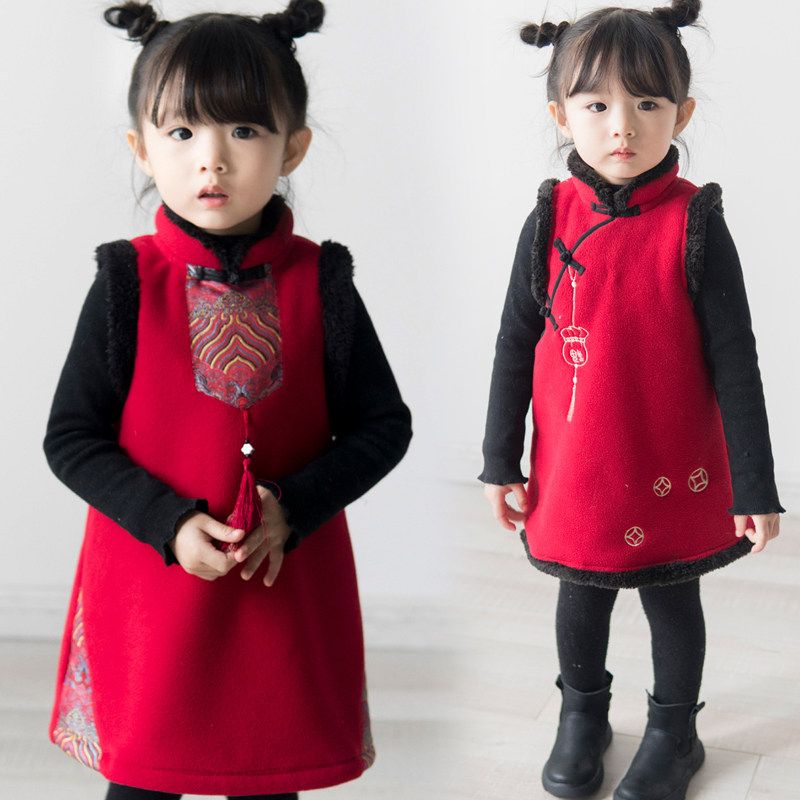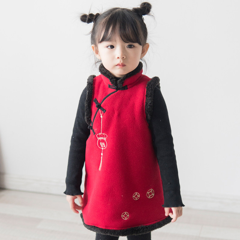 2026女童唐装冬装新年喜庆宝宝装衣服儿童马甲旗袍中国风宝宝年装