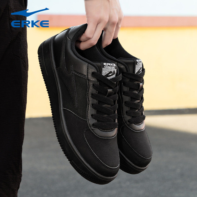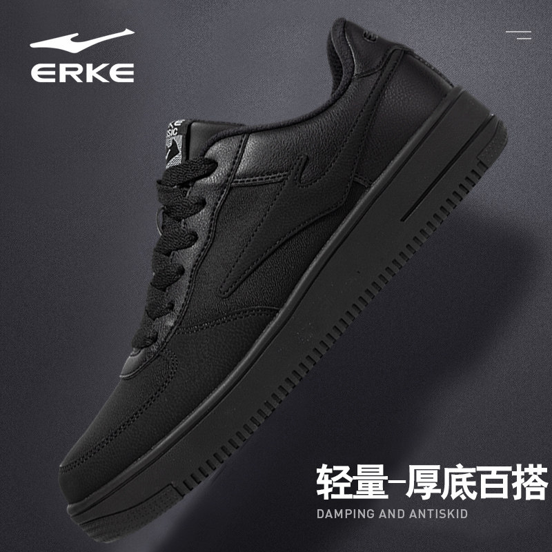 鸿星尔克黑色板鞋男全黑休闲鞋男款厚底鞋子运动鞋官方旗舰店男鞋