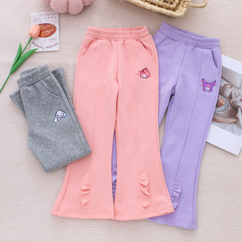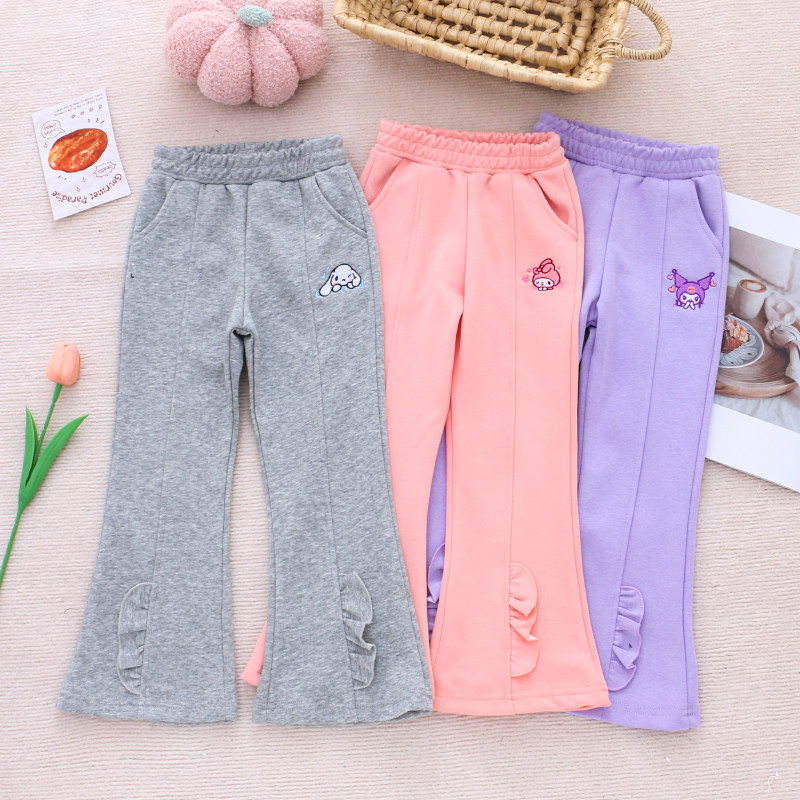 女童纯棉休闲喇叭裤春秋款口袋长裤儿童装宝宝洋气小女孩外穿裤子