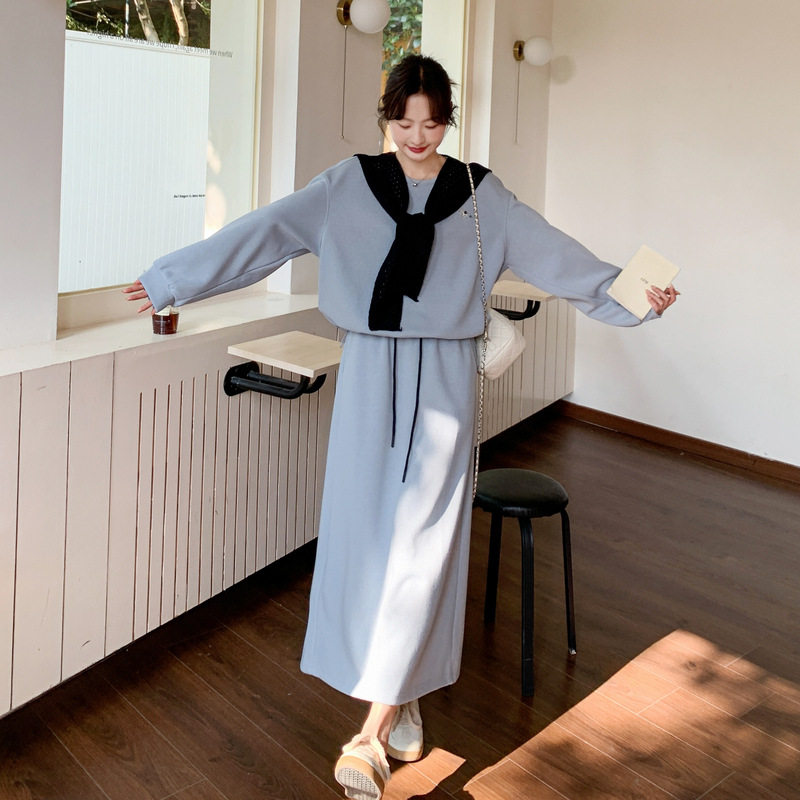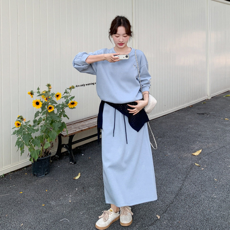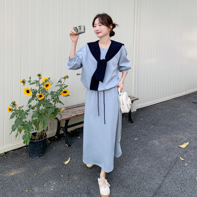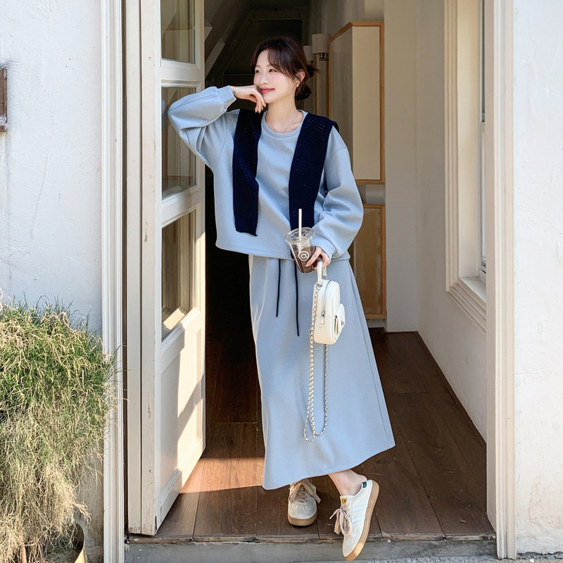 实拍蓝色慵懒风宽松休闲卫衣套装2026春款韩版显瘦半身裙两件套