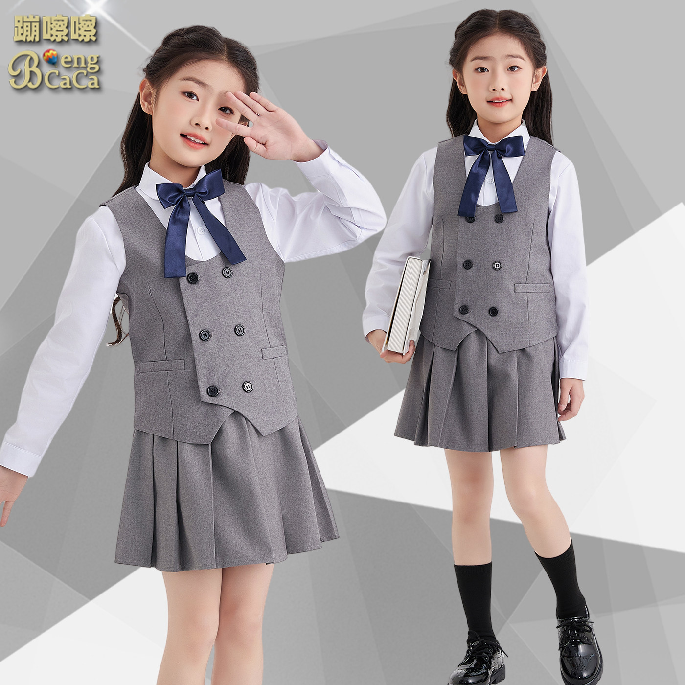 女童西装套装男童英伦学院风主持人礼服学生演讲合唱演讲比赛服装