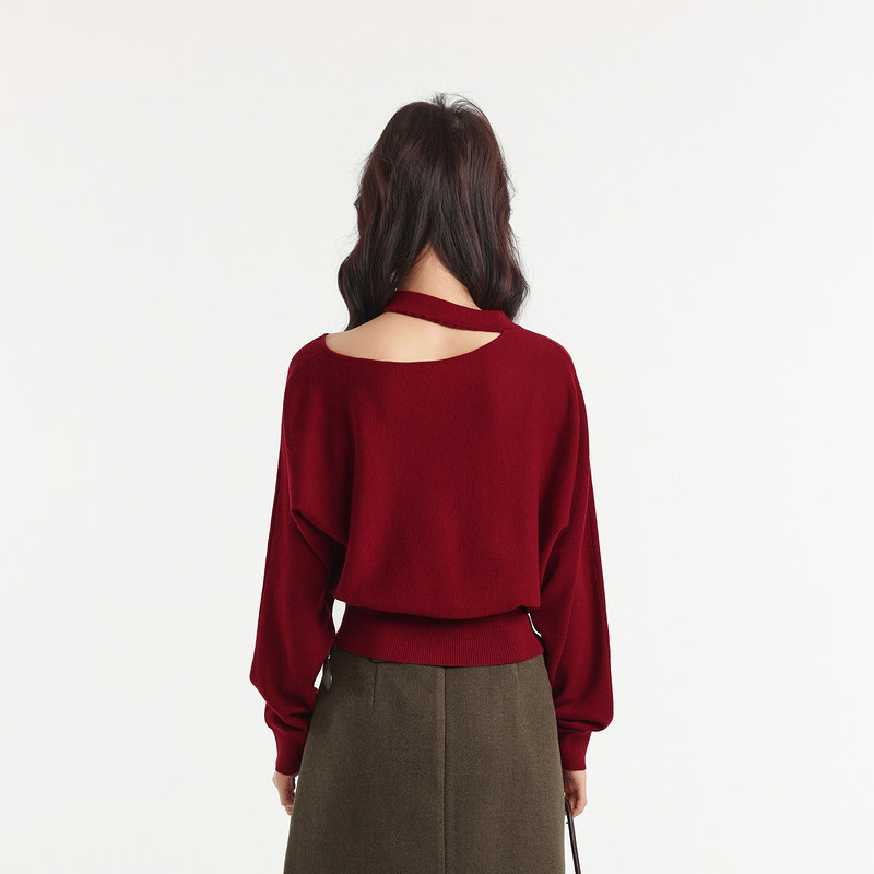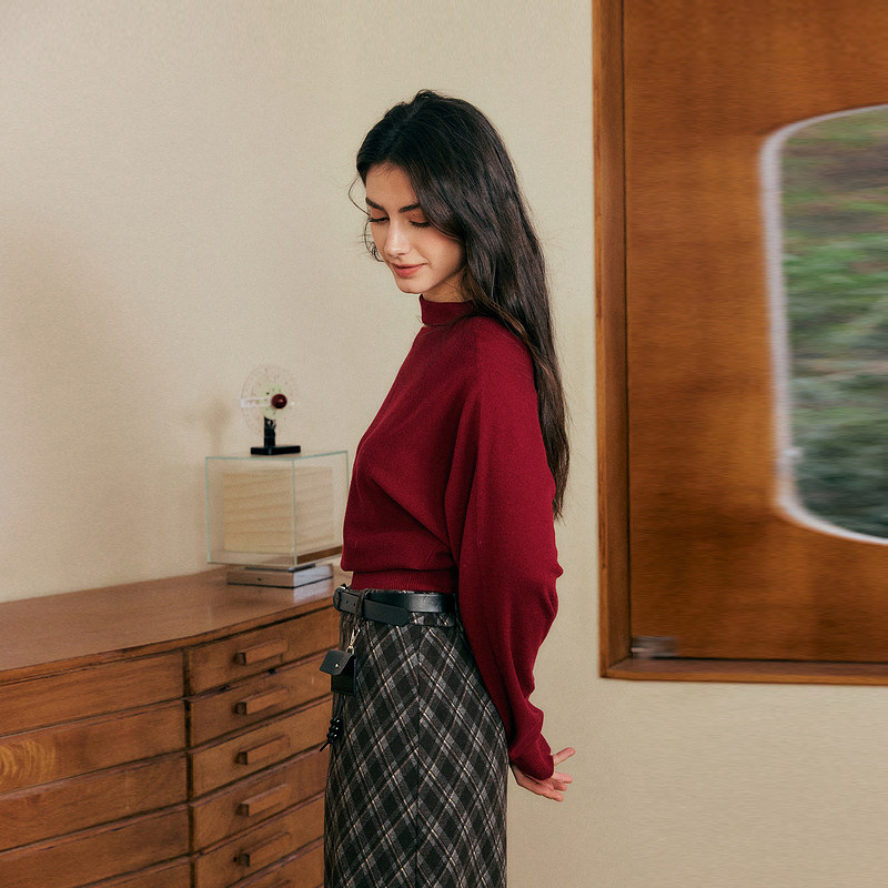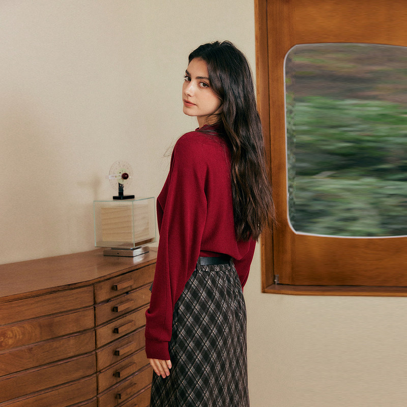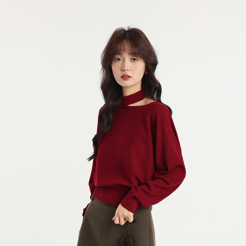 记忆的起点套头毛衣2026春季新款红色优雅风气质针织衫70GC55888