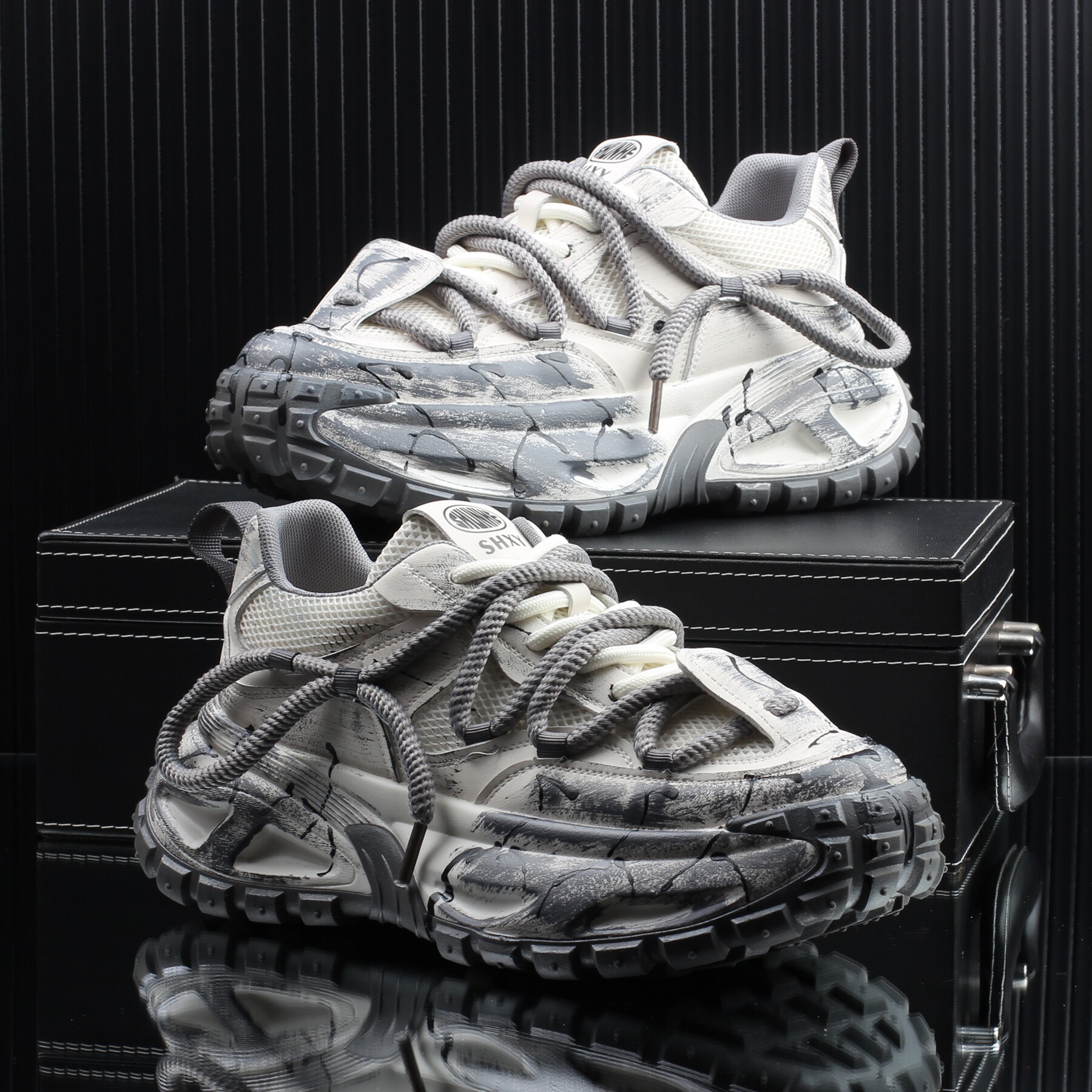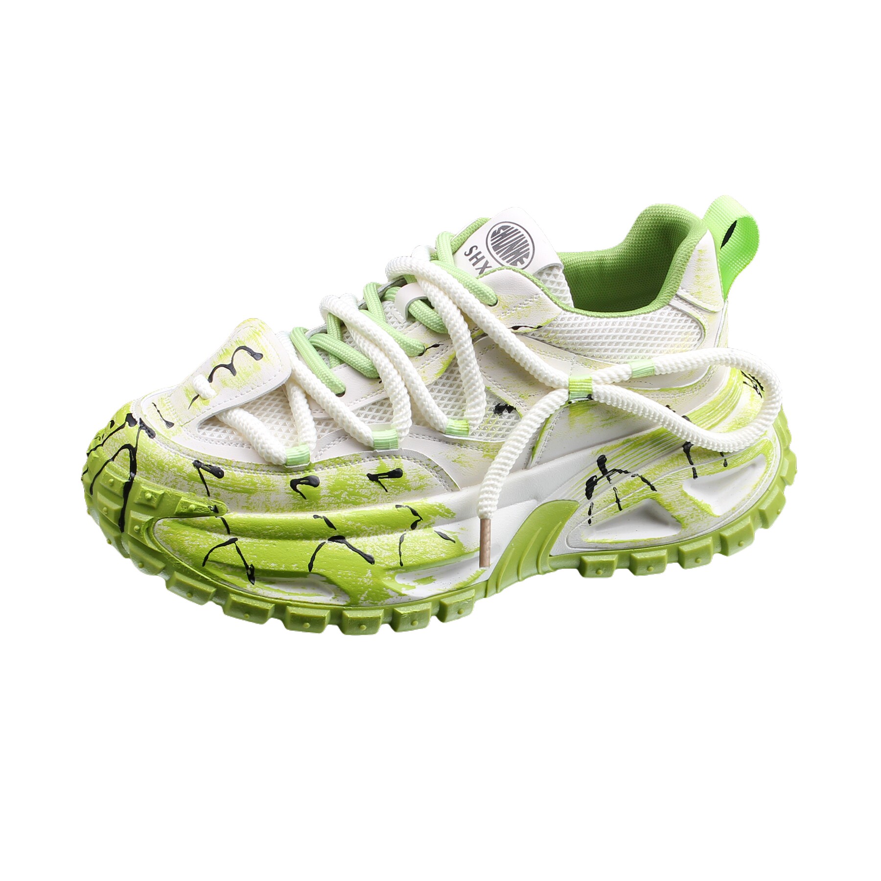 高级感潮牌时尚涂鸦休闲老爹鞋男款2026夏季新款网面透气增高男鞋
