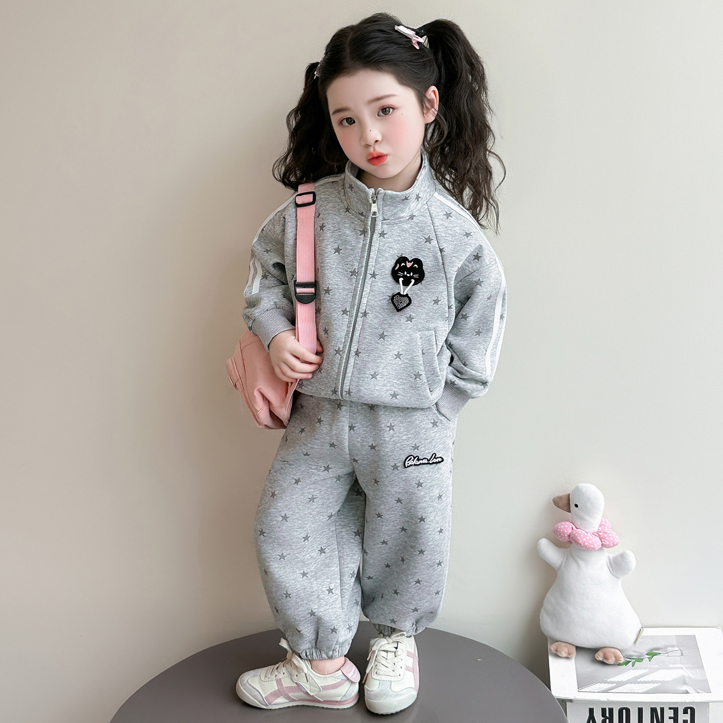女童春装运动套装小女孩洋气卡通卫衣两件套巨好看女宝宝时髦衣服