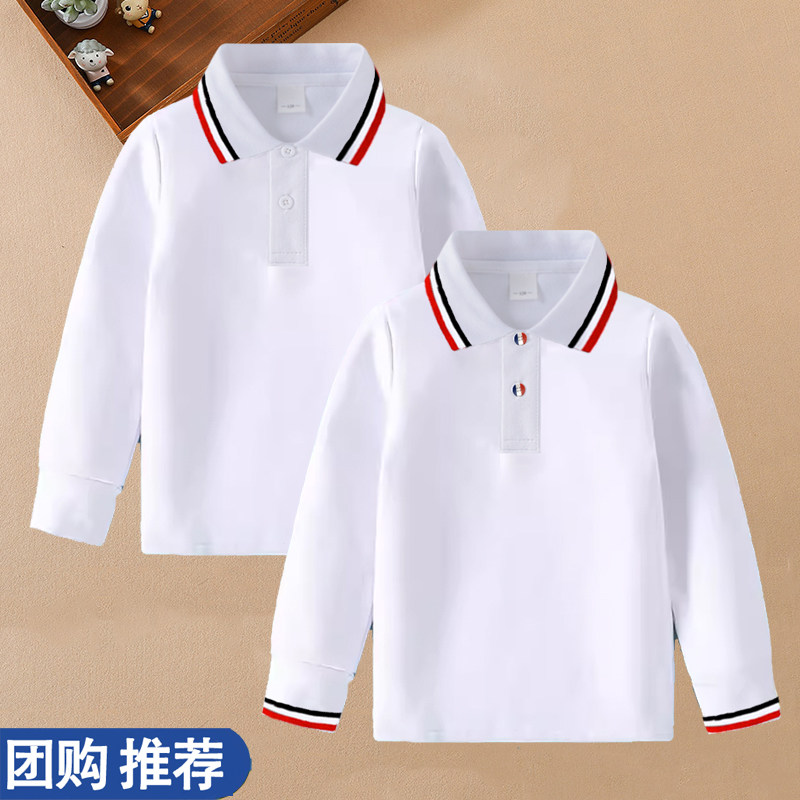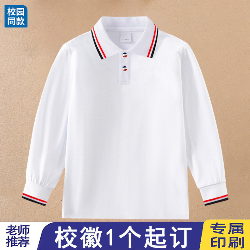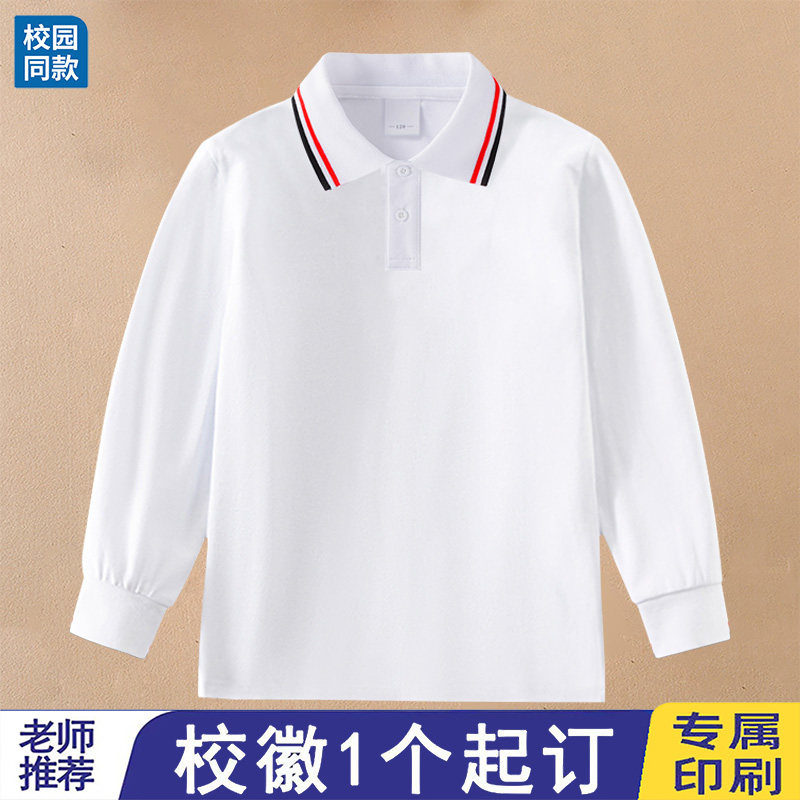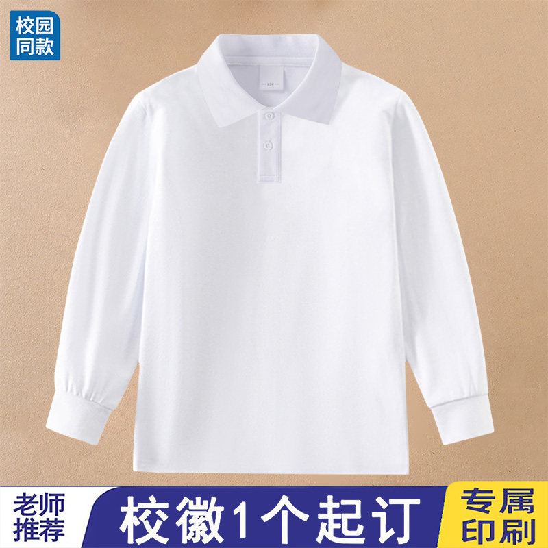01白色纯棉男童长袖t恤班服儿童POLO衫秋装小学生校服开学季校徽