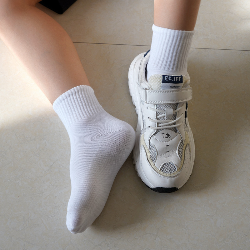儿童运动袜棉袜男童女童袜中筒袜吸汗黑色中大童白色学生袜子秋冬