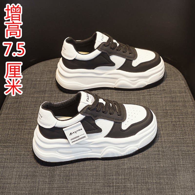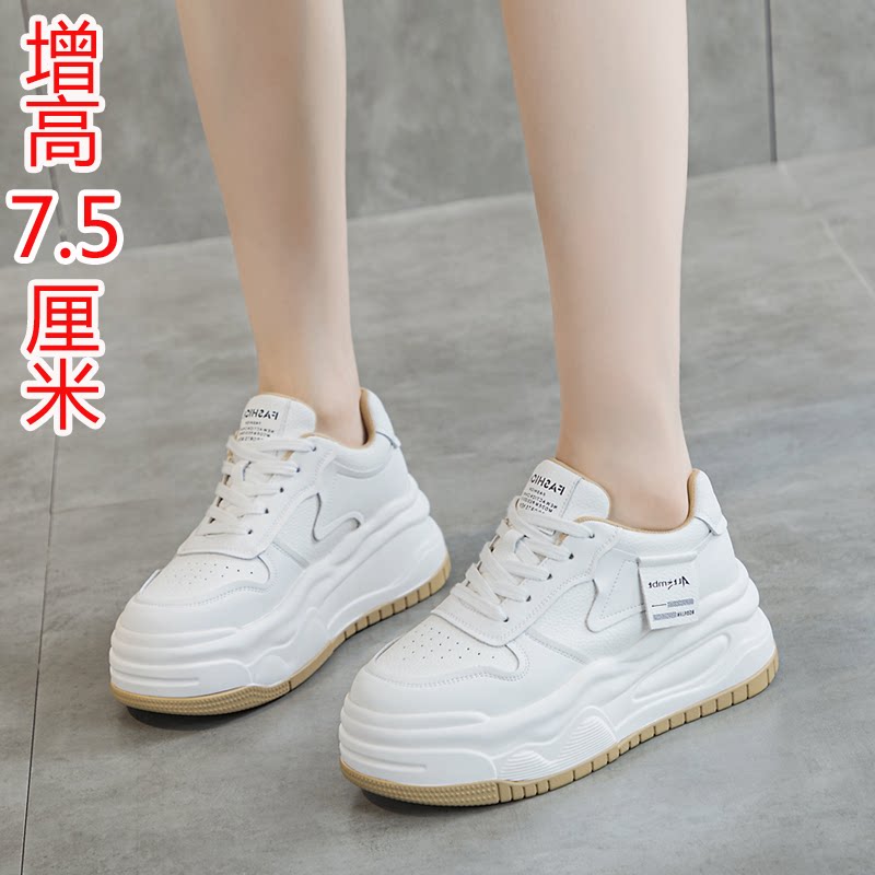 内增高小白鞋女8cm小个子松糕厚底板鞋真皮小码女鞋32码33 34秋季