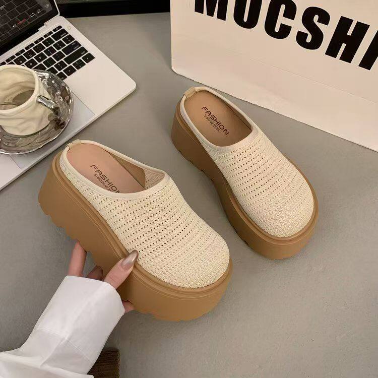 厚底增高包头拖女外穿2026年夏季新款休闲舒适透气懒人一脚蹬拖鞋