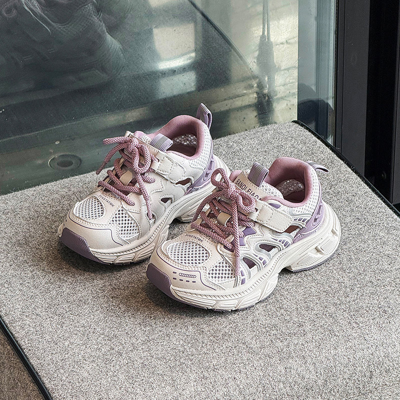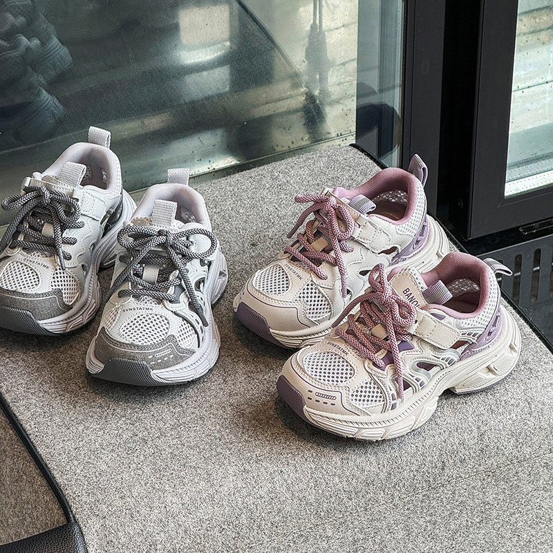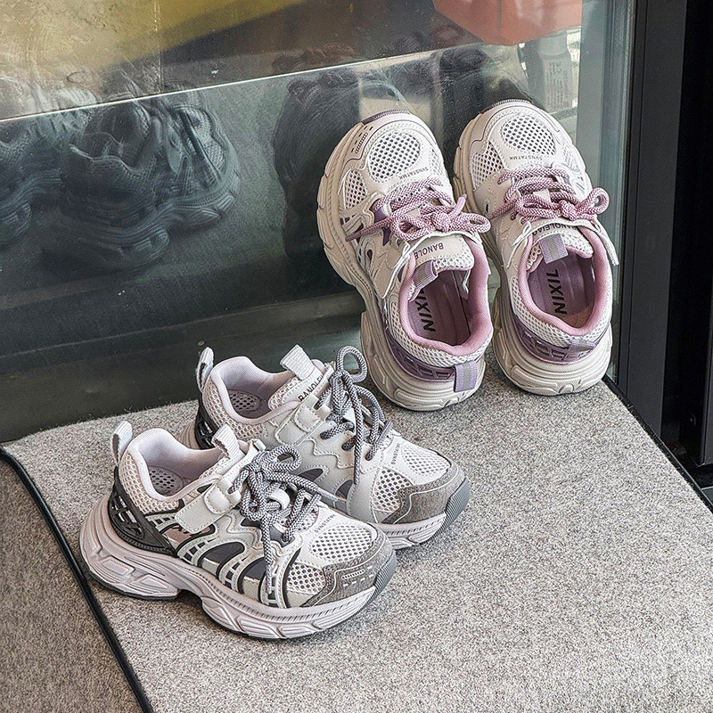 不臭脚吸汗透气镂空网面夏季儿童男童女童老爹粉色小男孩运动单鞋