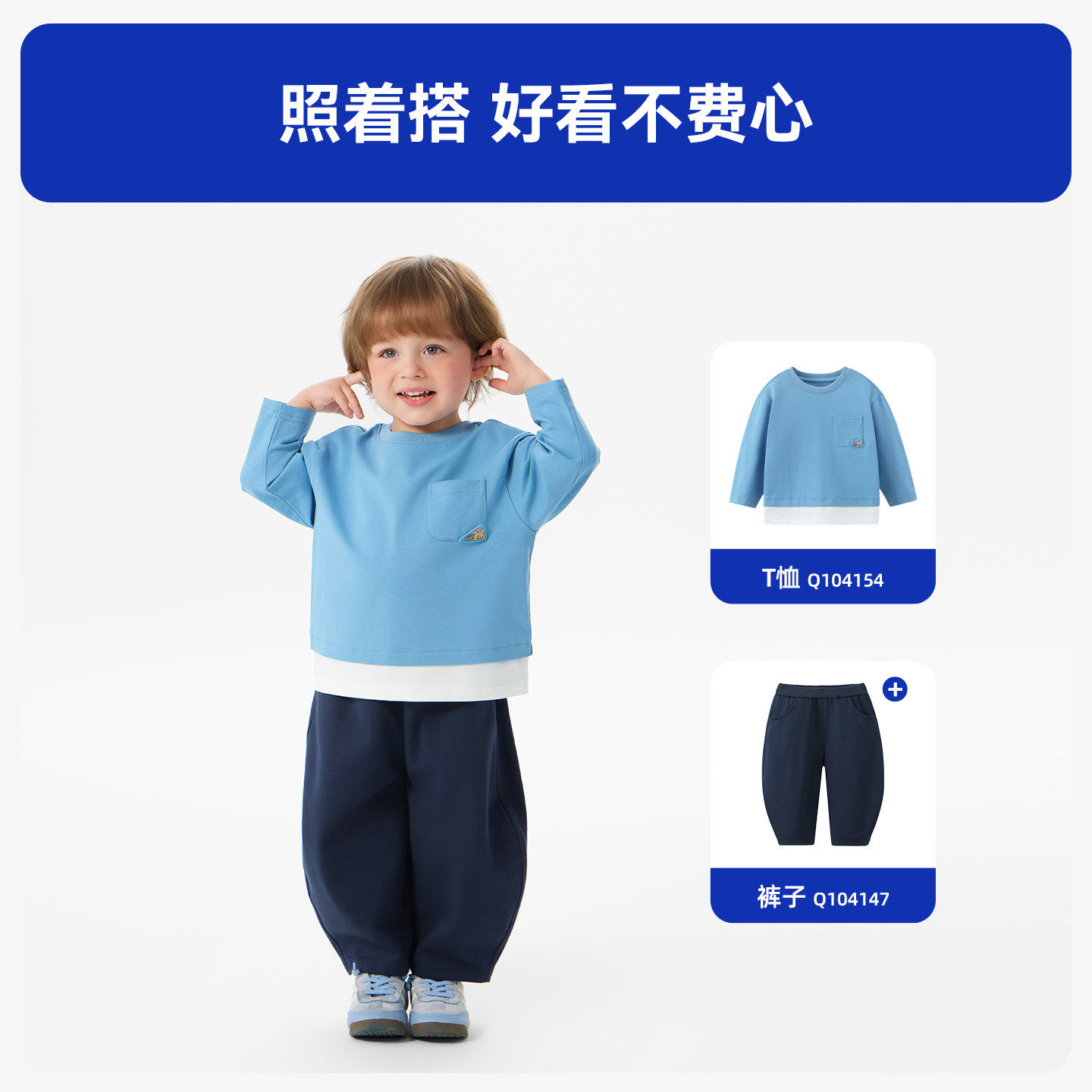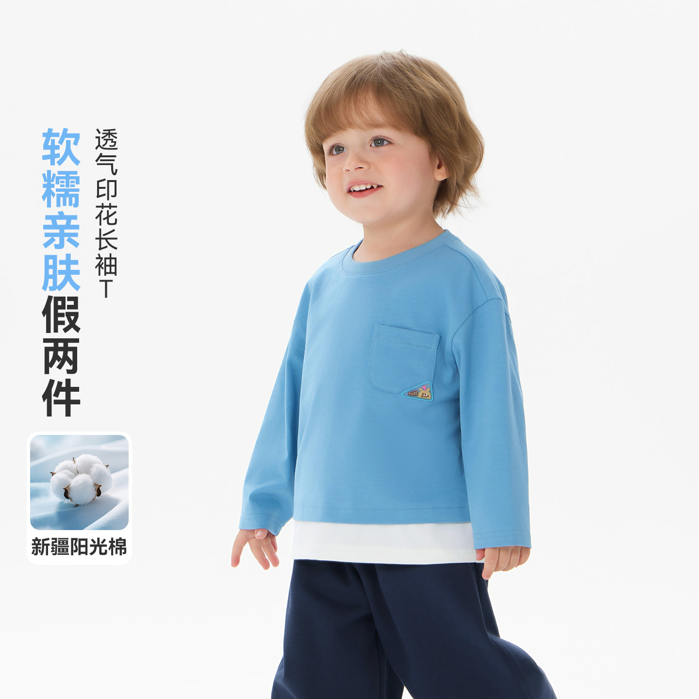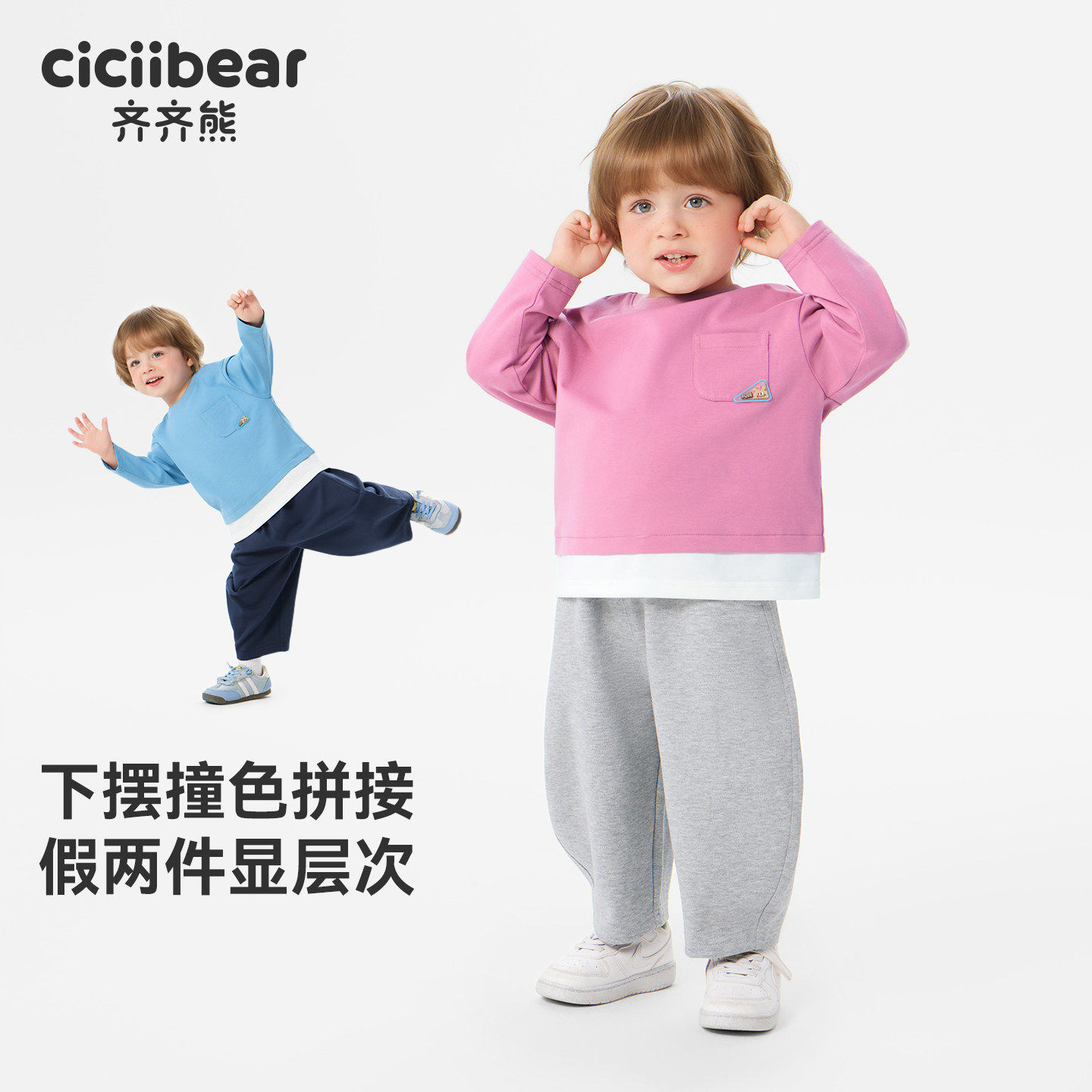齐齐熊宝宝长袖t恤假两件男童春装上衣印花体恤2026新款童装女款