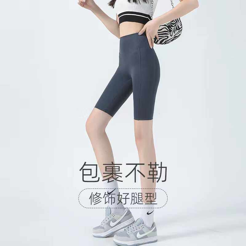 口袋鲨鱼裤女夏季薄款高腰提臀瑜伽健身跑步紧身五分骑行打底短裤