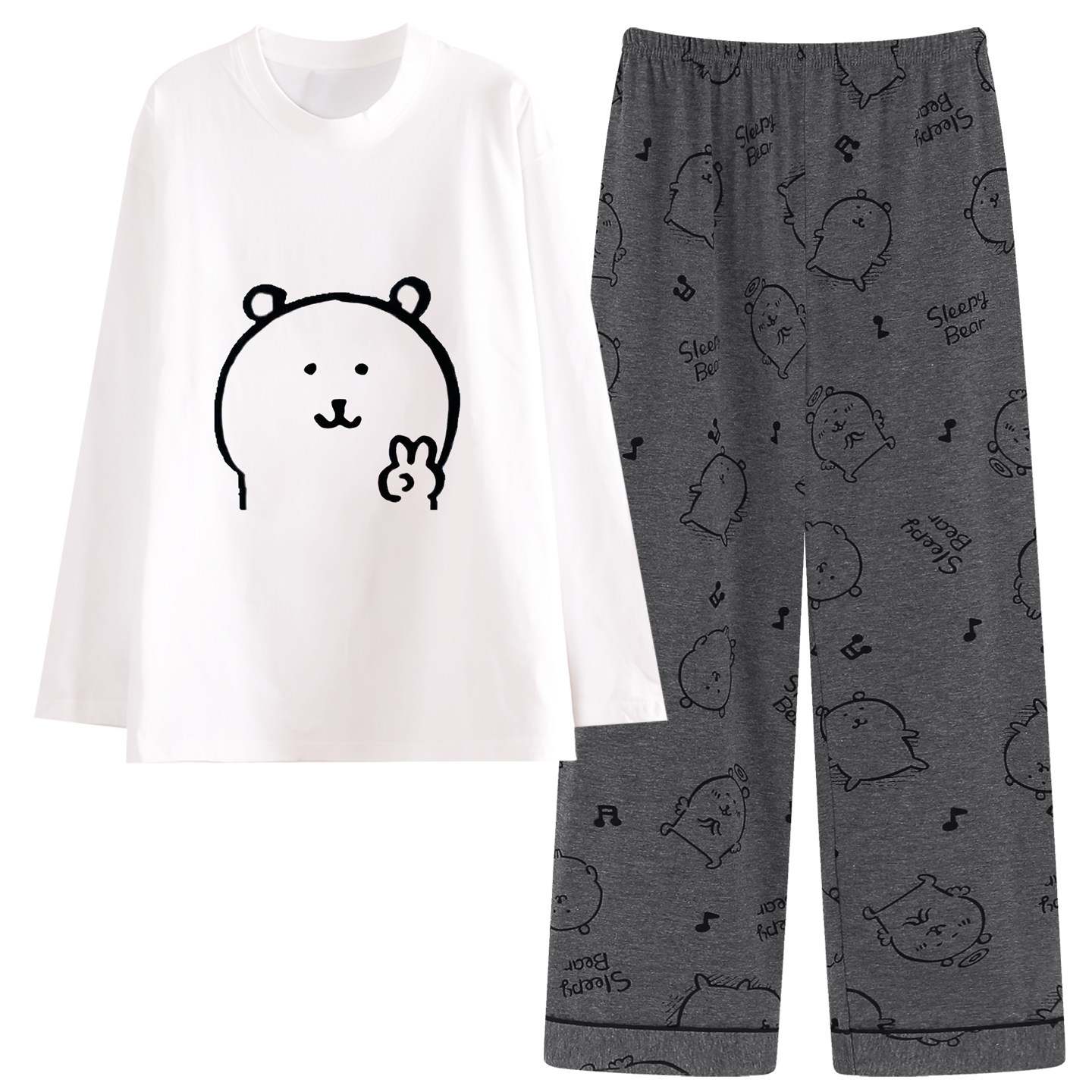 自嘲熊睡衣女款长袖春秋季圆领纯棉可爱卡通简约宽松高级感家居服