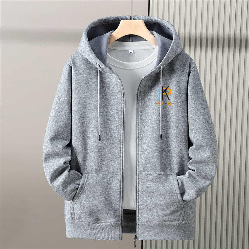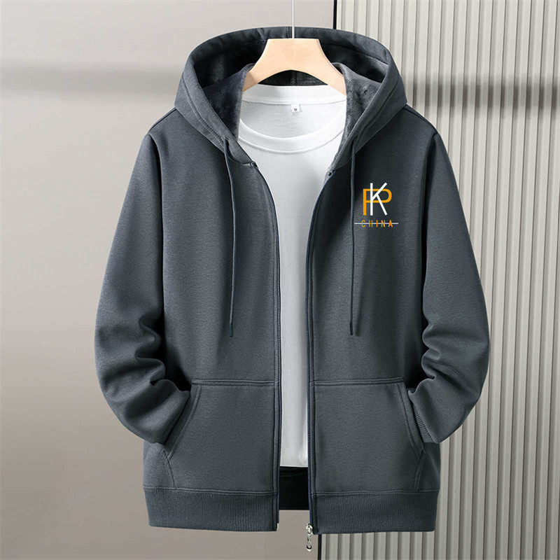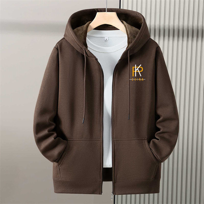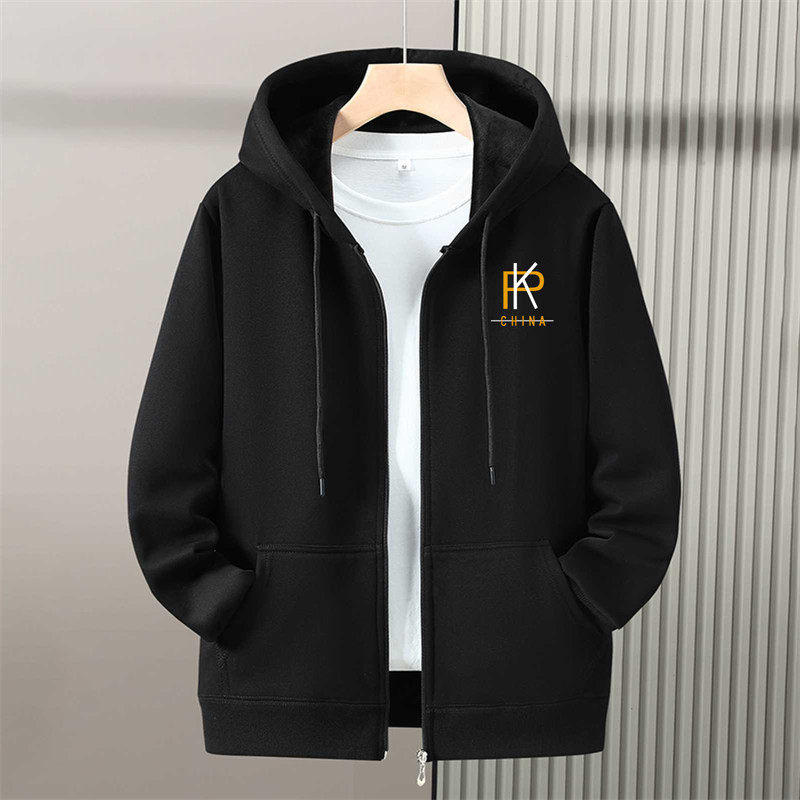 秋冬季加绒加厚带拉链开衫卫衣男连帽大码青少年初中学生春秋外套
