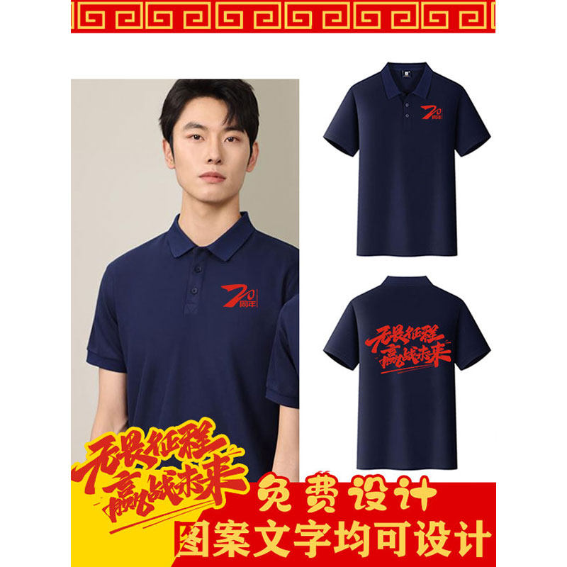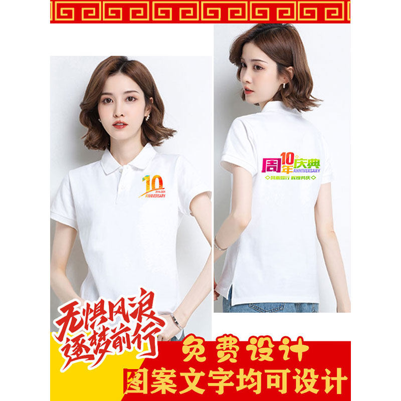 周年庆翻领工作服定制t恤纯棉男女短袖夏季工衣厂服文化衫印logo