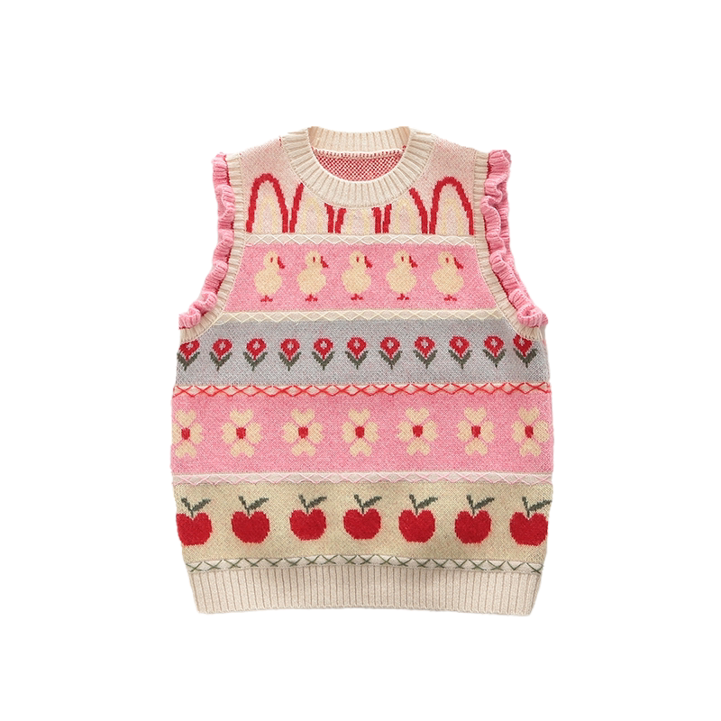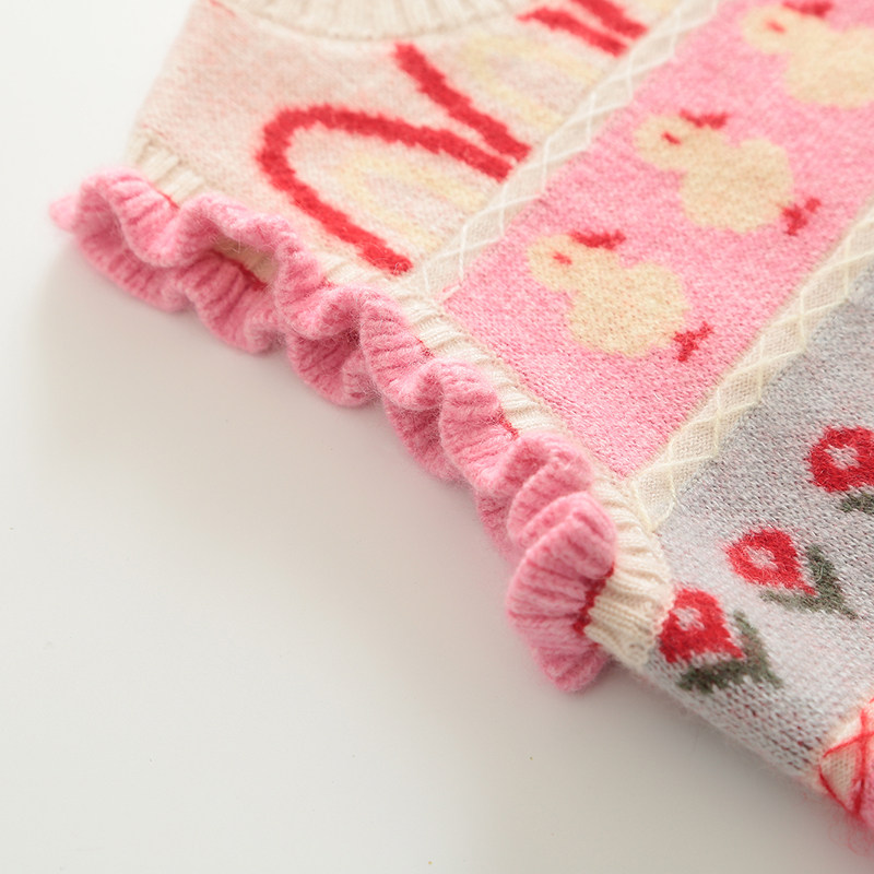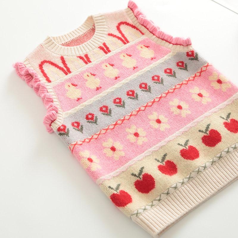 秋冬季女童羊绒衫背心圆领儿童毛衣马甲女宝宝羊毛衫中小童粉色
