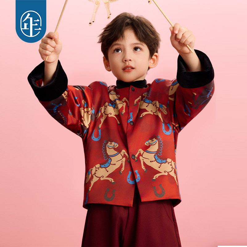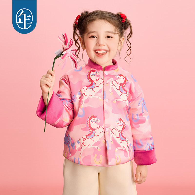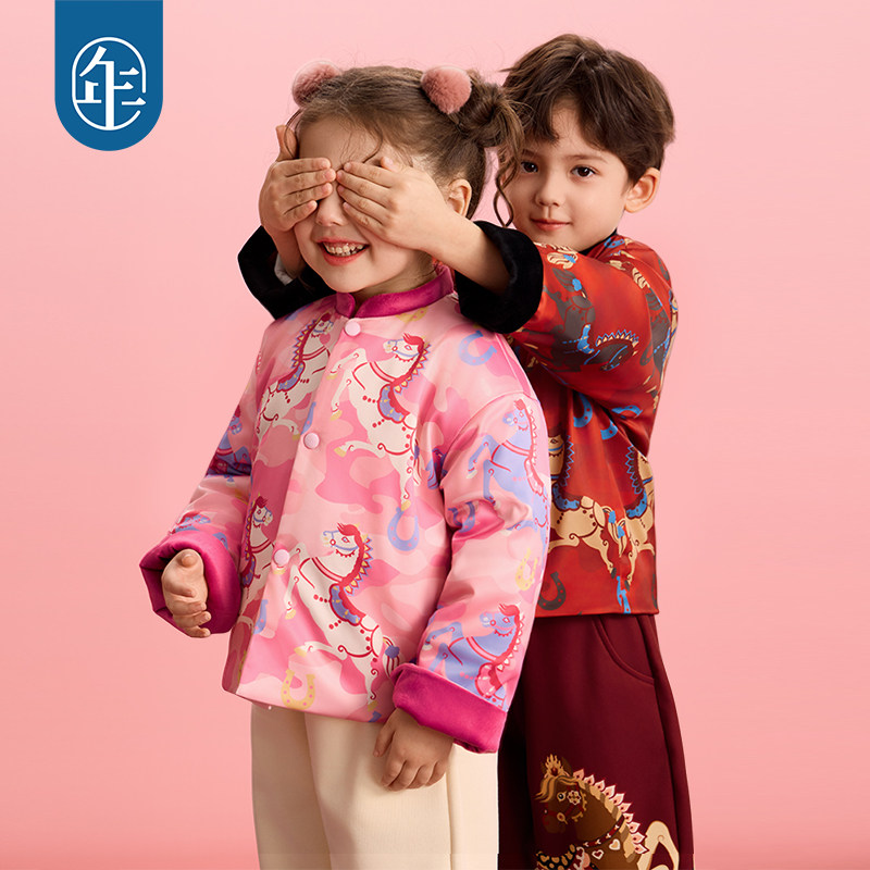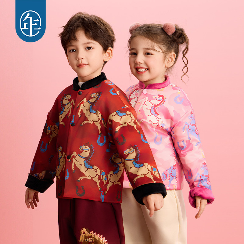 年衣童装儿童唐装冬季新品男女童中式国风加绒上衣毛绒外套过年服