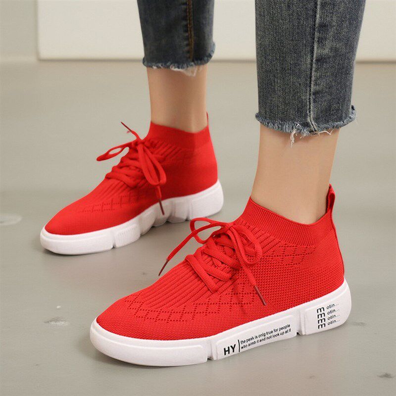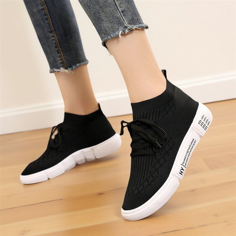 新品弹力袜子鞋2026春夏季w防滑百搭黑色女鞋透气飞织一脚蹬运动