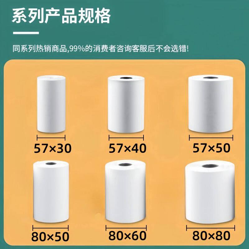 热敏外卖打印纸57x50收银纸100卷客如云80X6050小票纸80x80mm热敏纸餐厅厨房后厨纸80mm收银机细芯无管芯卷纸