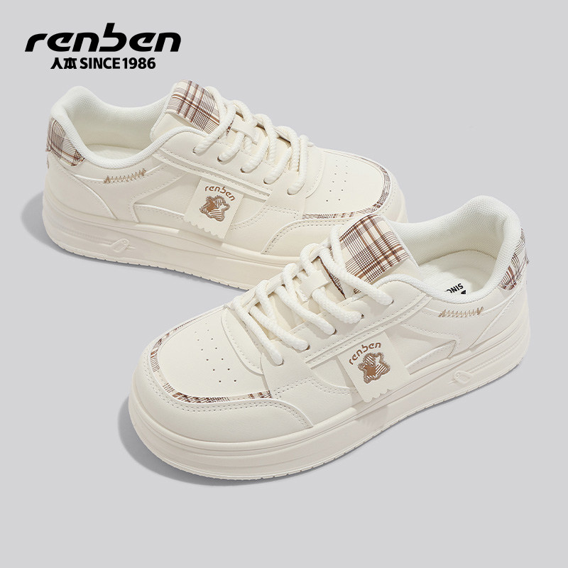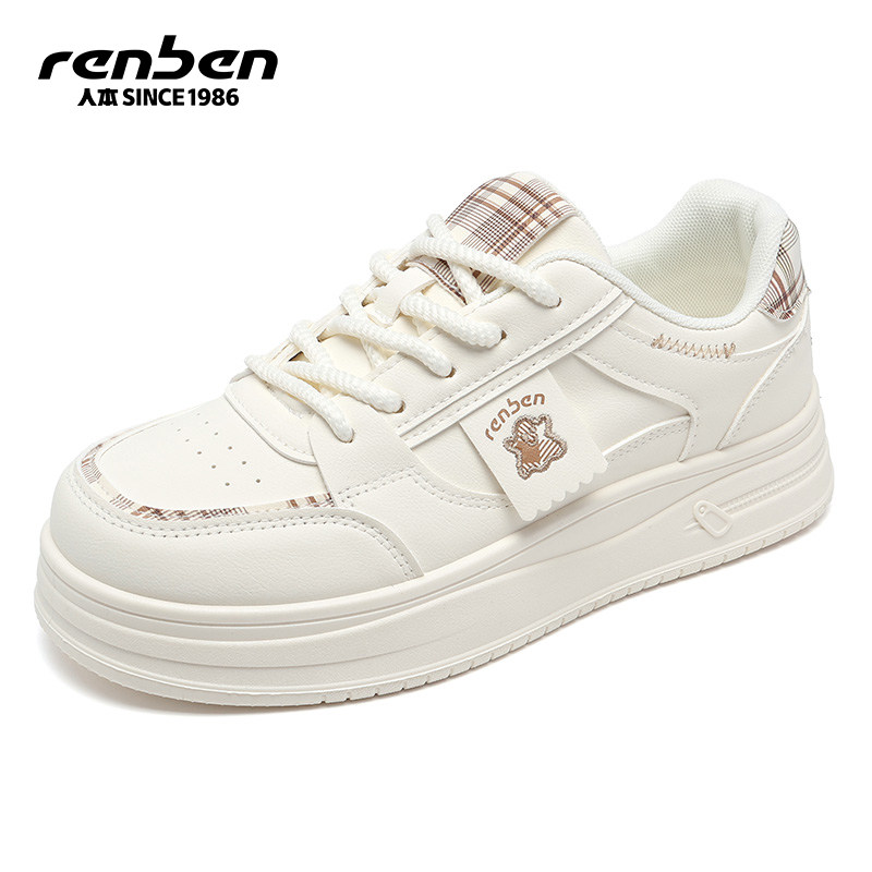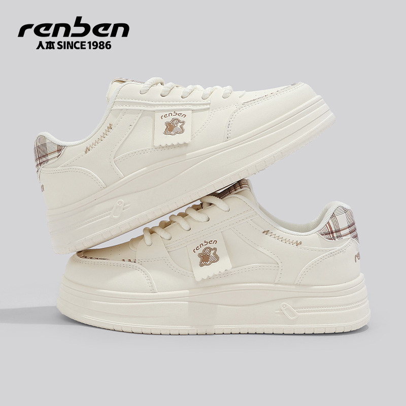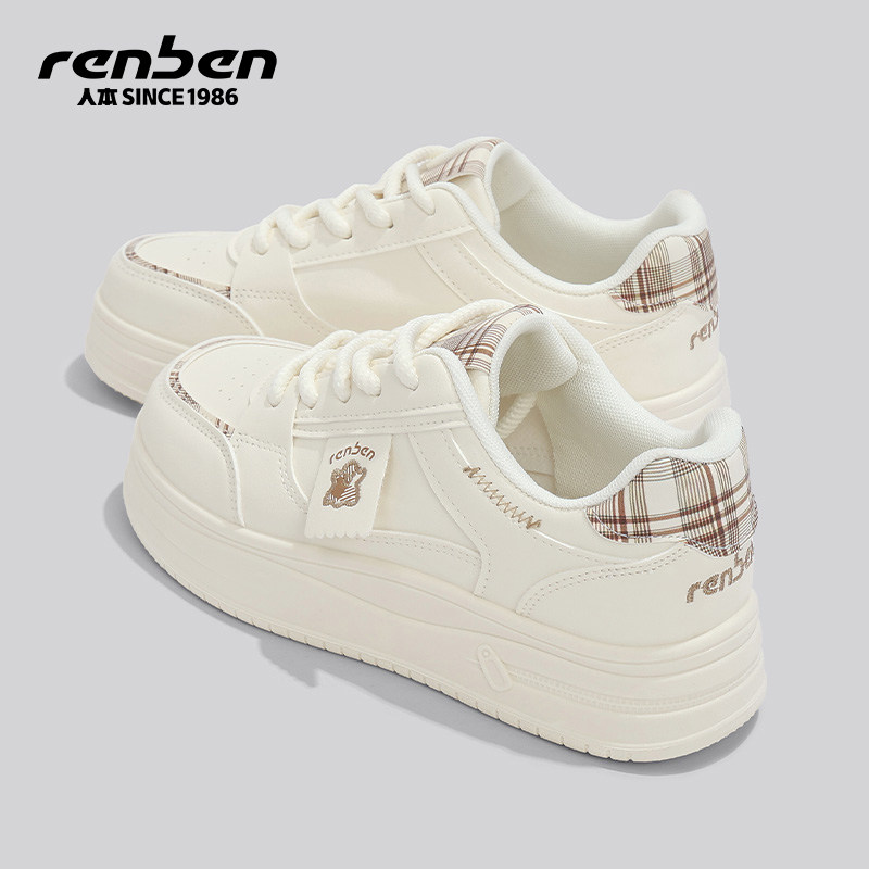 人本板鞋女款2026春季新款厚底增高学生运动百搭轻便设计感小白鞋
