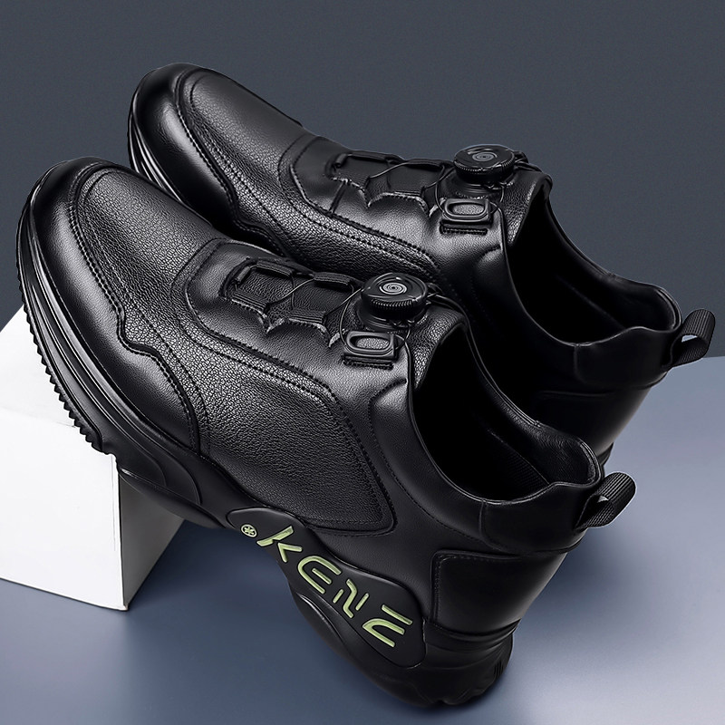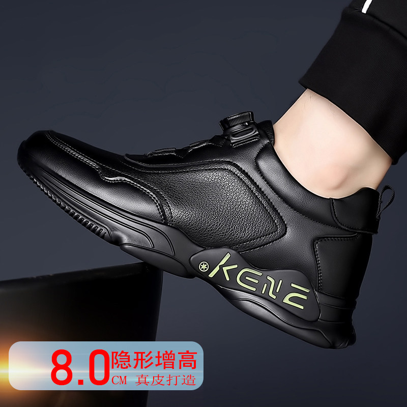秋冬季休闲皮鞋男真皮隐形内增高男鞋8cm百搭旋转扣潮鞋加绒保暖
