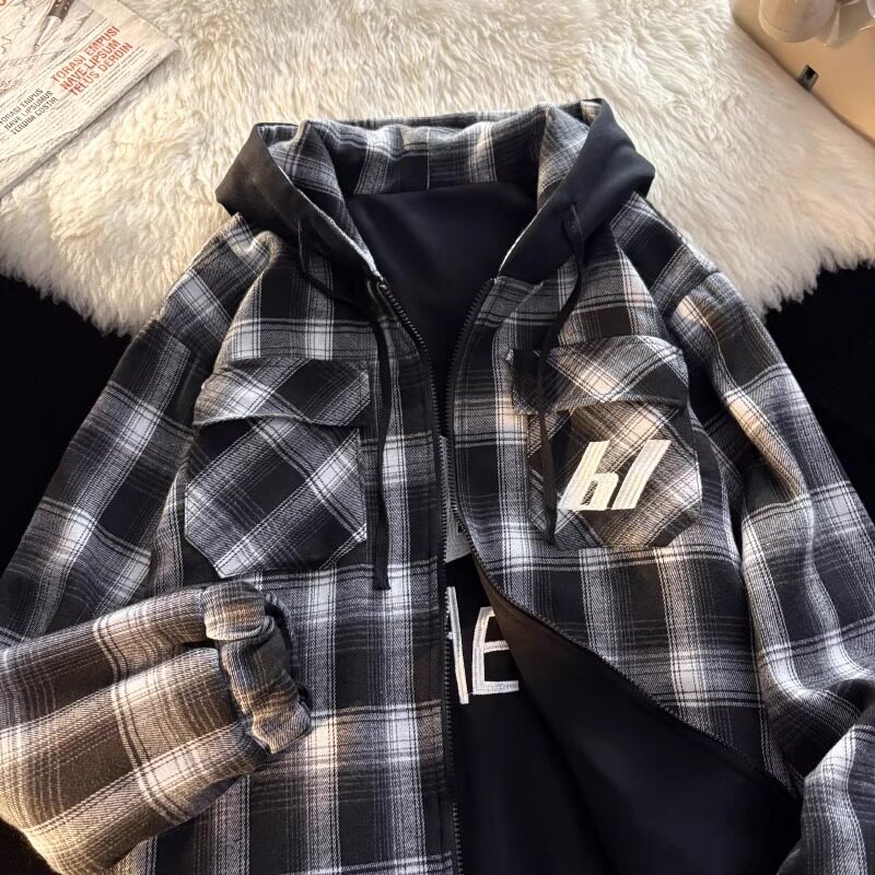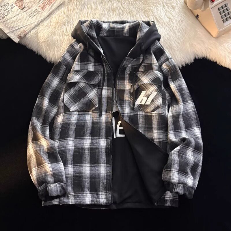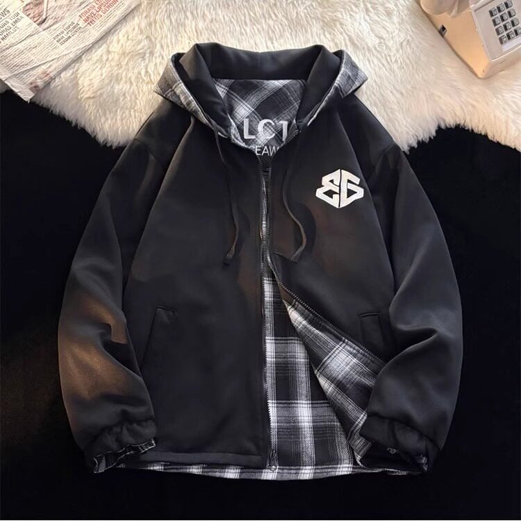 高级感痞帅格子外套男款长袖冬季宽松加厚加绒休闲上衣双面穿夹克