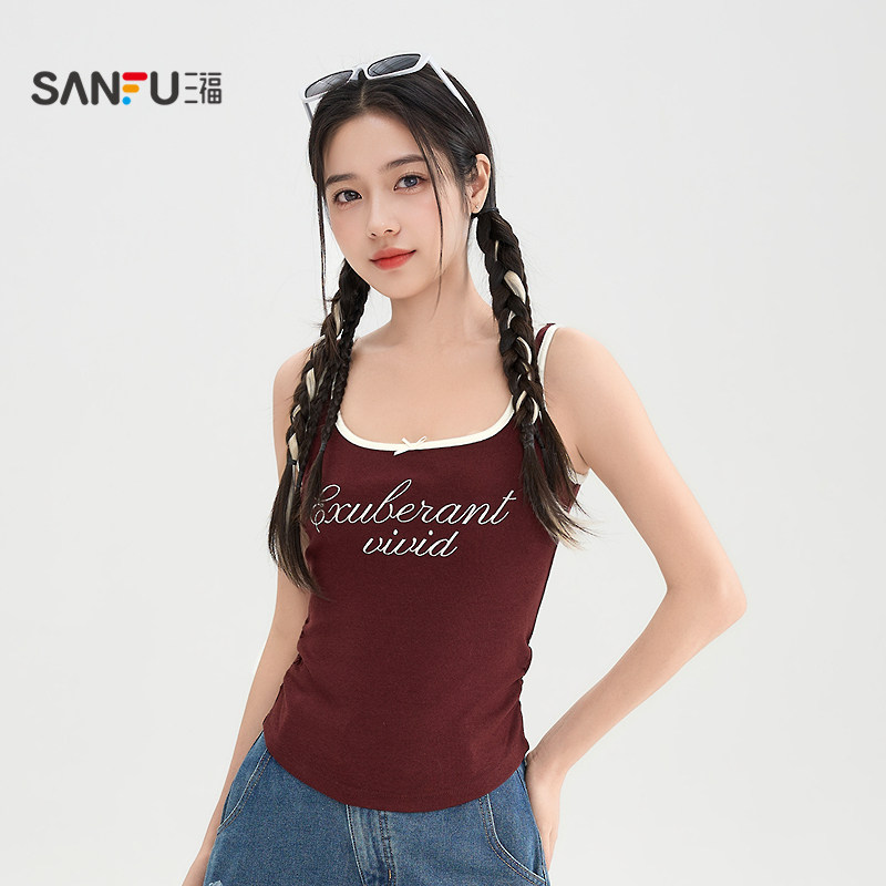 三福吊带背心外穿女2026新款春季收腰修身短款内搭上衣女装515734