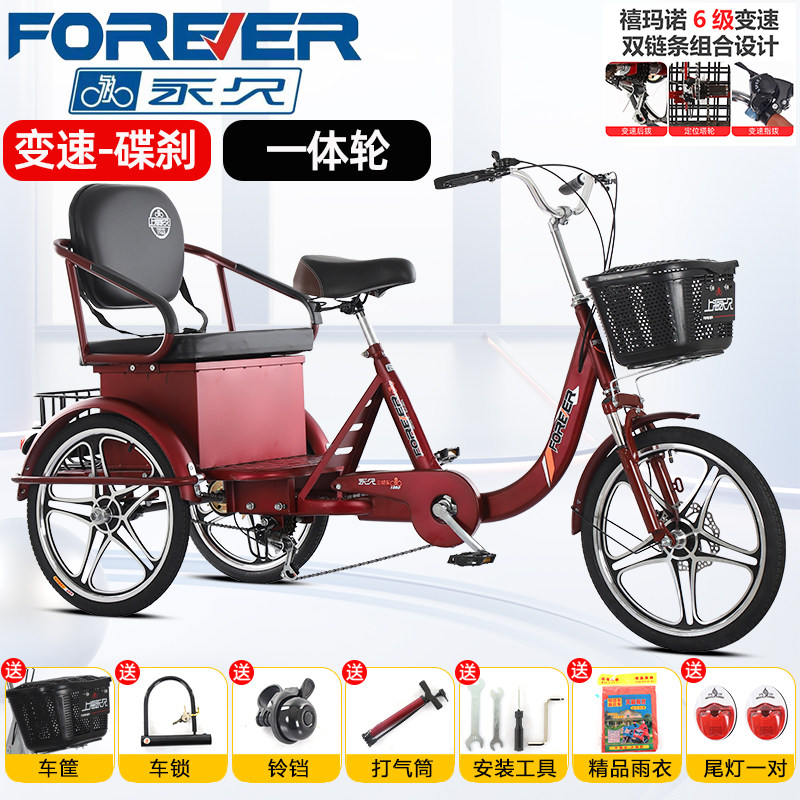 永久三轮人力自行车老年人变速双链条脚蹬脚踏代步车成人碟刹单车