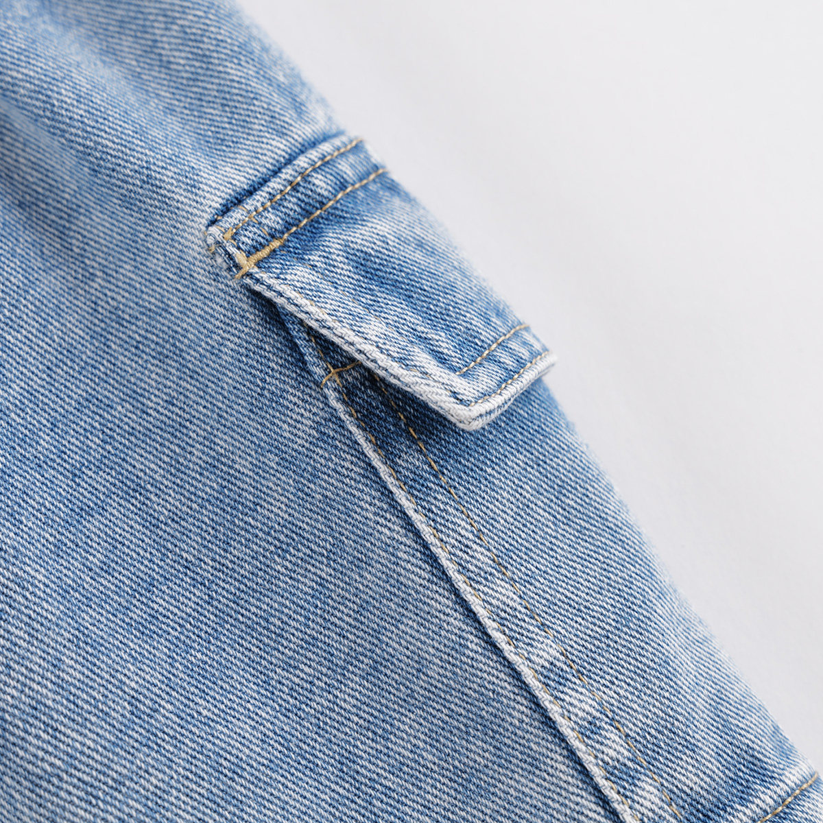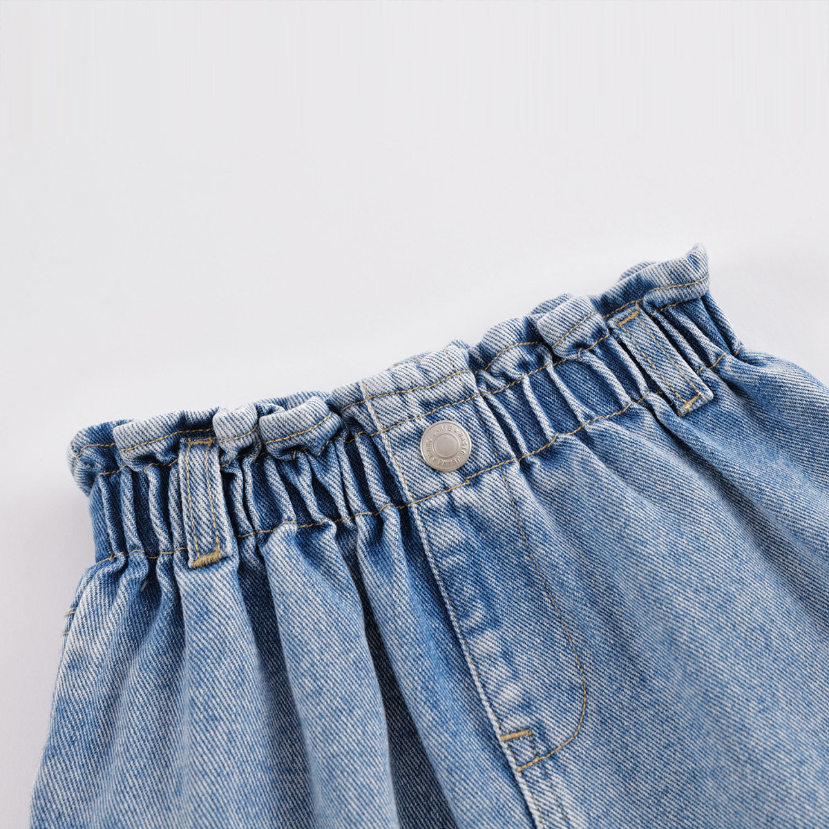311线报网描述:100%全棉牛仔,微褶花边腰头,对称大口袋