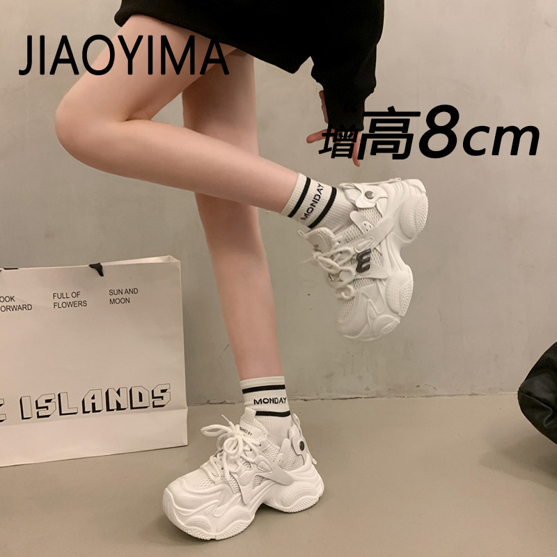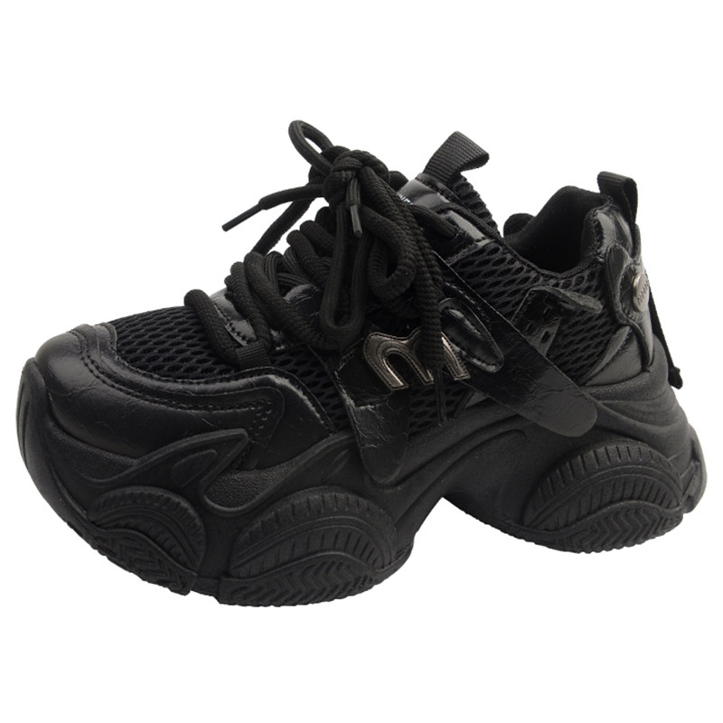 黑色老爹鞋女款2026新款百搭透气网面厚底休闲鞋内增高运动小白鞋