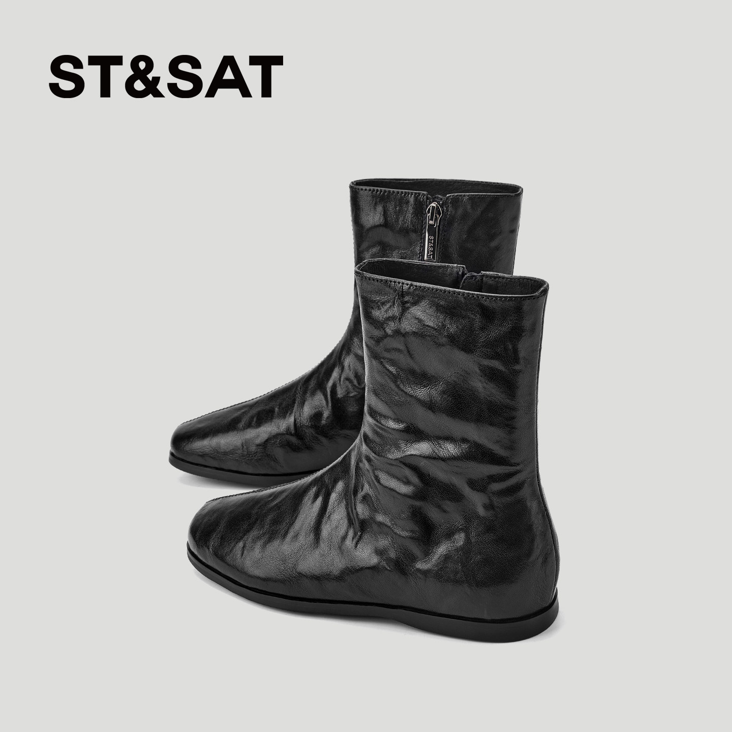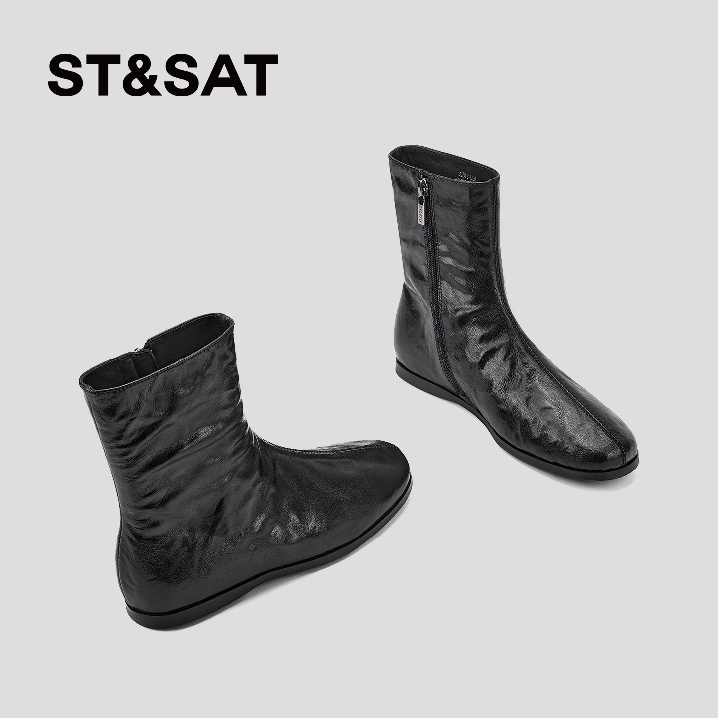 星期六内增高巨好看小短靴女2025冬季新款真皮加绒马丁靴平底女靴