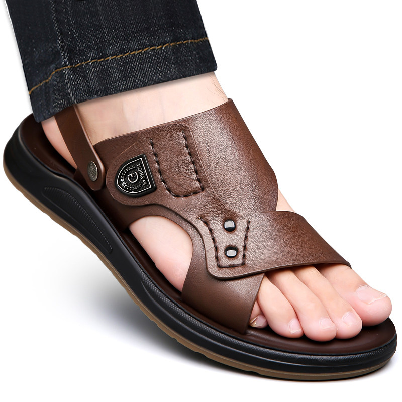 蜻蜓牌男士凉鞋夏季新款真皮休闲沙滩鞋男款防滑软底凉拖鞋牛筋底