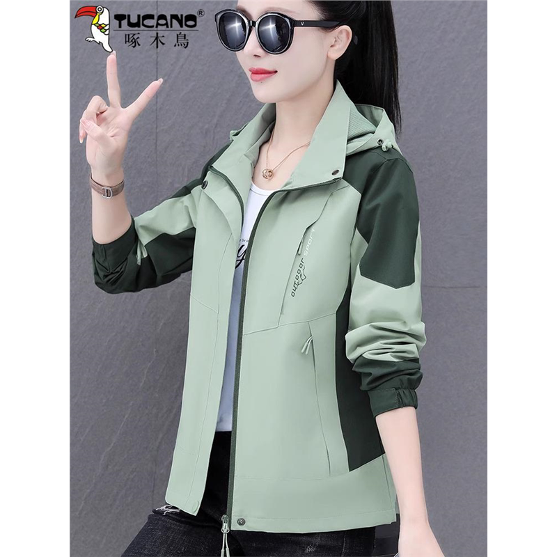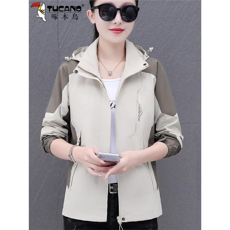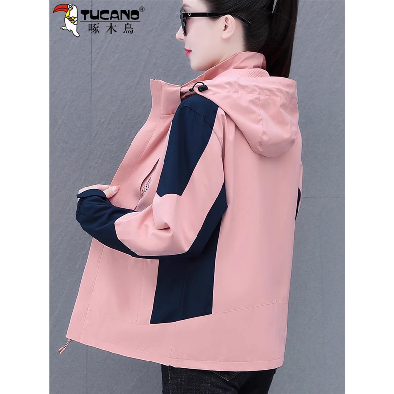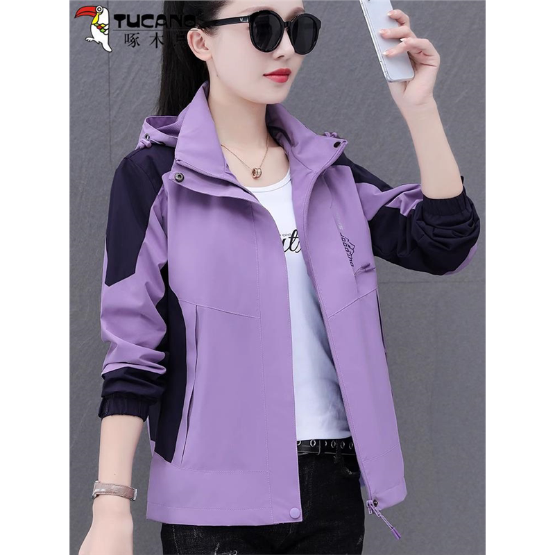 啄木鸟户外冲锋衣女款2025新款春秋冬妈妈宽松夹克三合一加厚外套