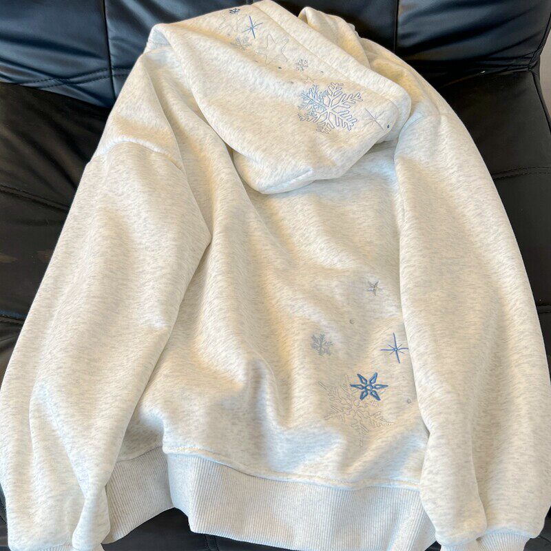 纯棉重工绣花!雪花刺绣重磅开衫厚棉T女款连帽衫春秋冬加绒外套