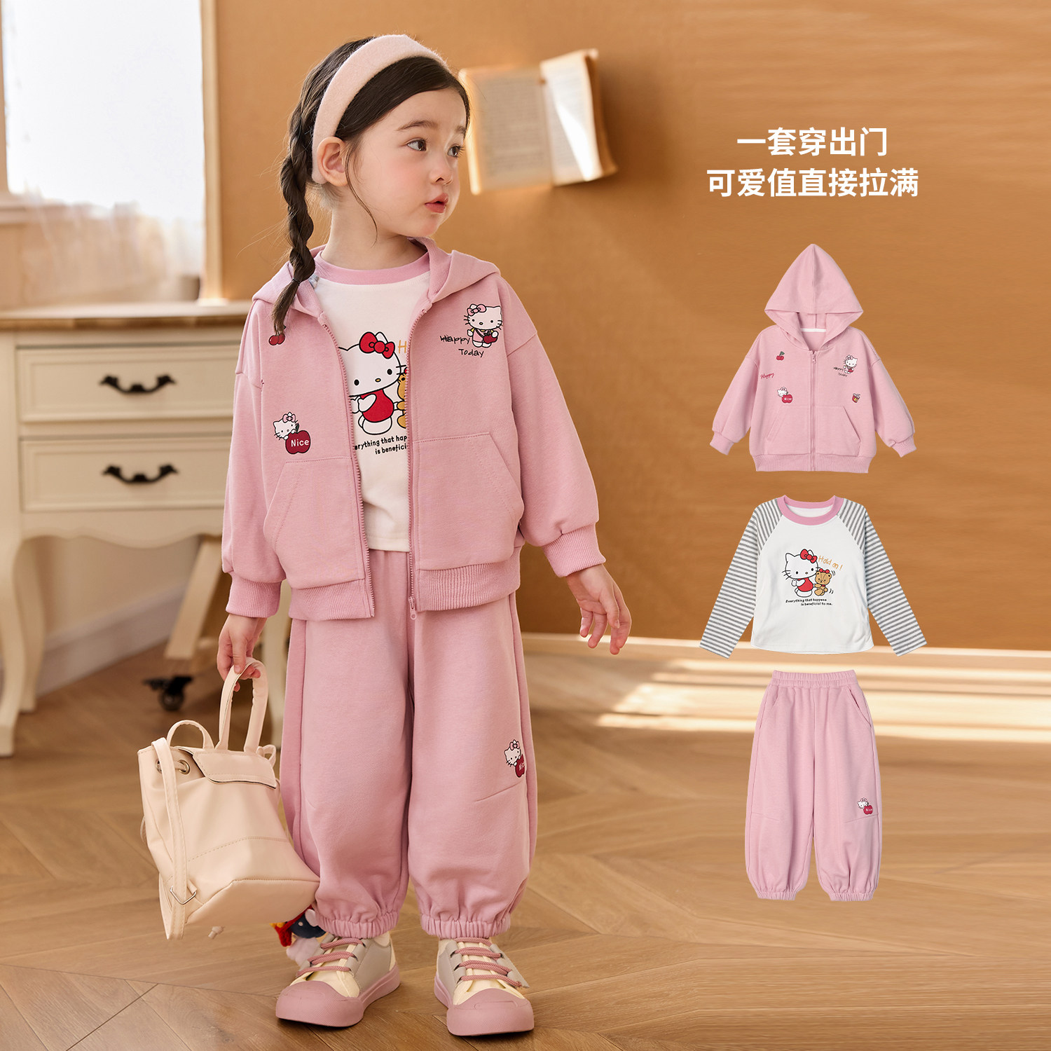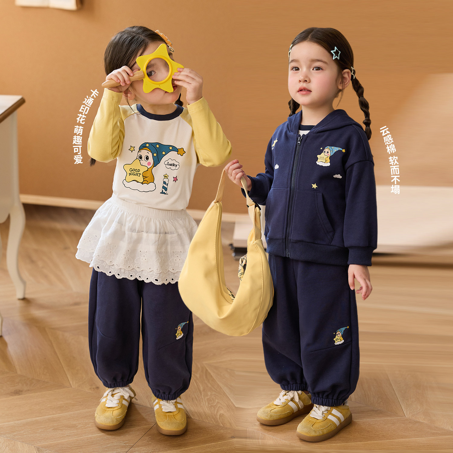 小O宝童装 宝宝卫衣套装女运动风刺绣2026春装新款女童外套套装