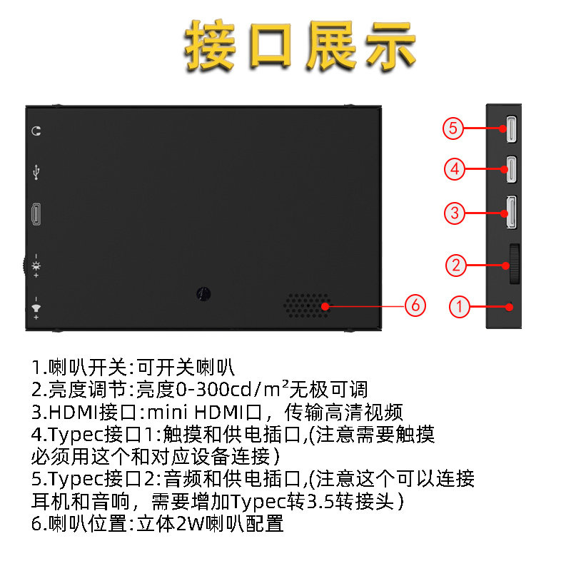 5寸迷你显示器IPS导航监视便携车载电脑高清内置喇叭金属外壳屏