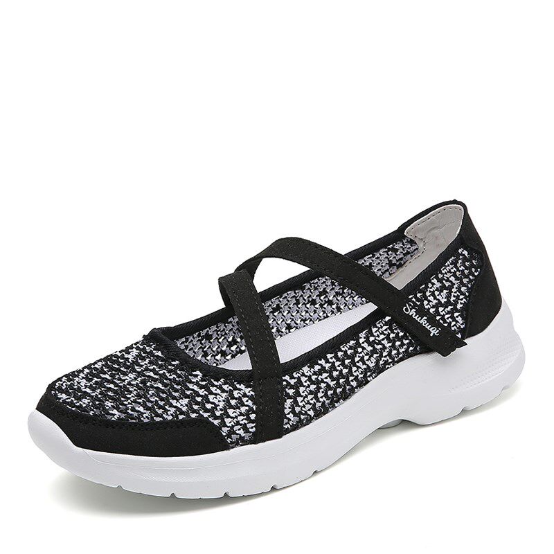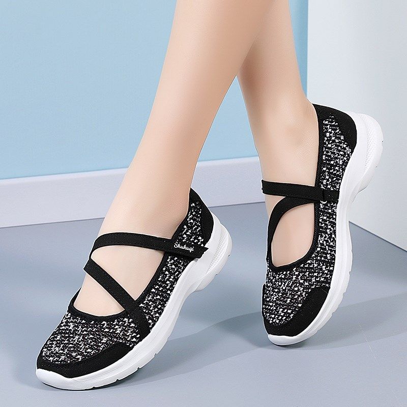 夏季网鞋女透气薄款黑色网面运动女鞋一脚蹬软底舒适中老年妈妈鞋
