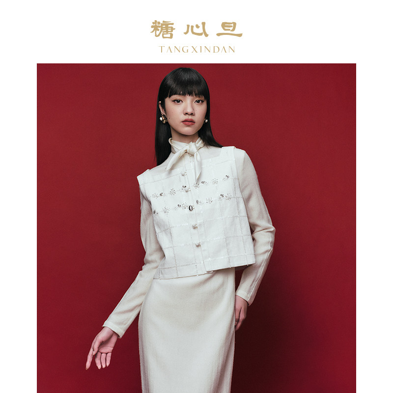 糖心旦TANGXINDAN玉絮 白色亨利领新中式连衣裙长裙修身