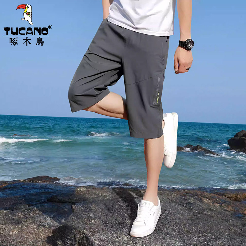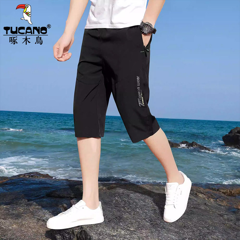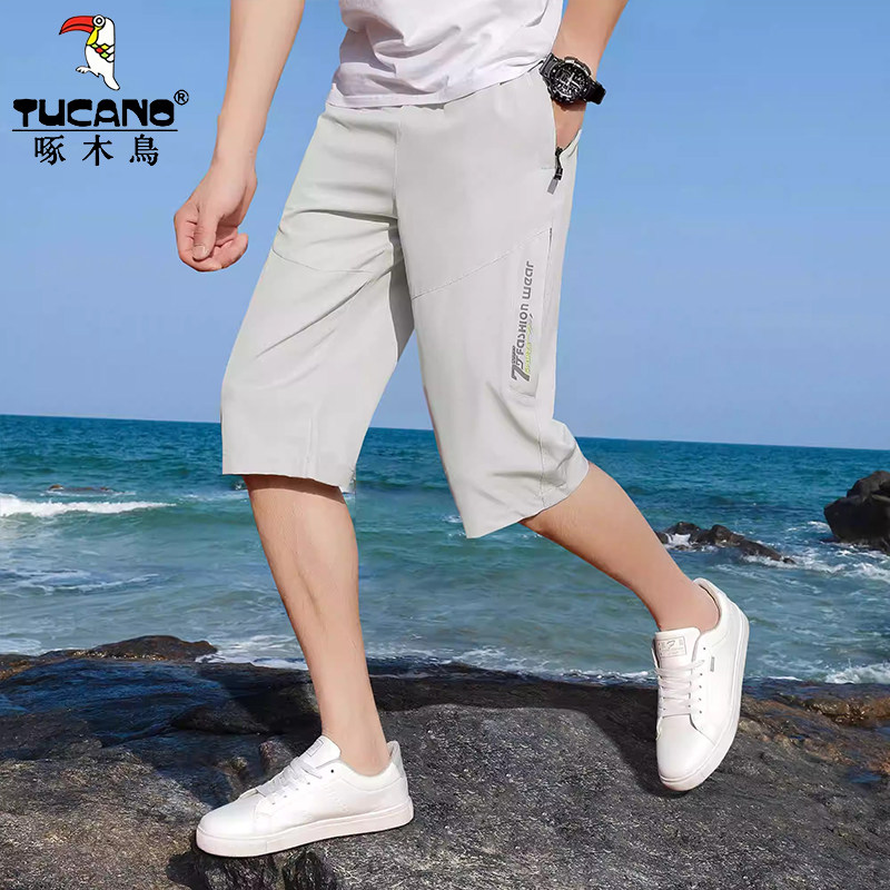 啄木鸟男士七分裤男款夏季薄款2025新冰丝休闲裤宽松速干运动短裤
