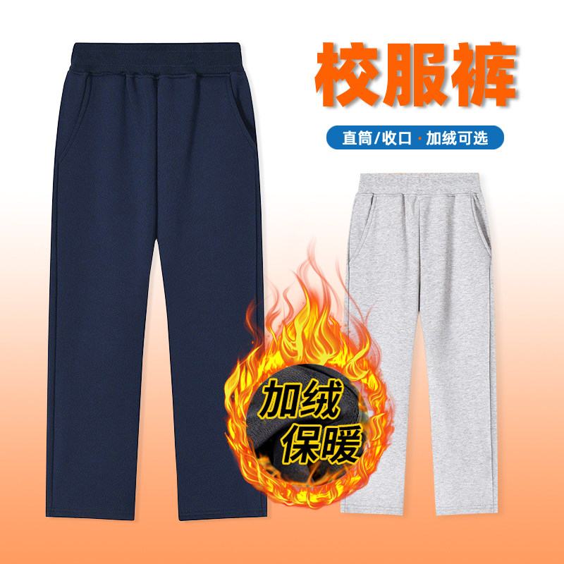 儿童校服裤子藏青小学生男童女童深蓝色春夏秋中大童直筒运动长裤