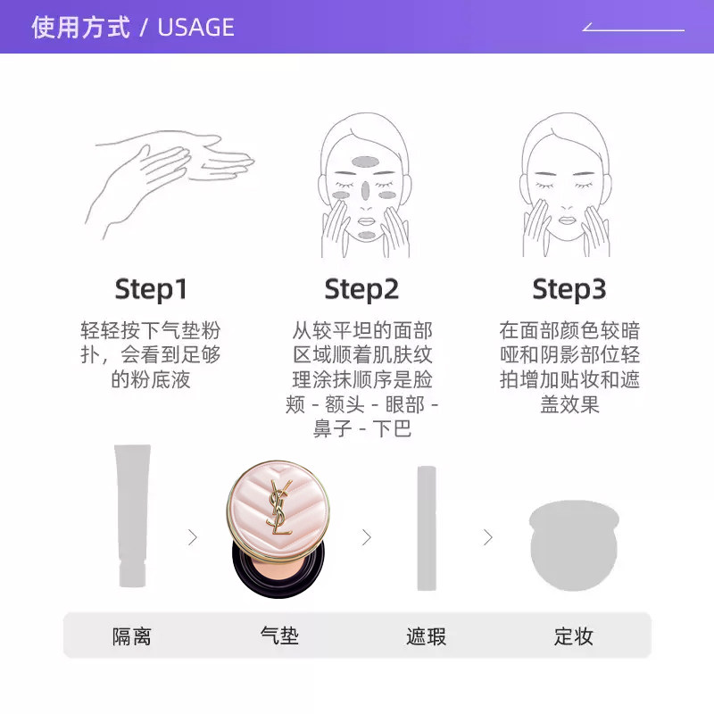 【自营】YSL/圣罗兰气垫bb霜粉皮革气垫遮瑕正品持妆粉底防晒