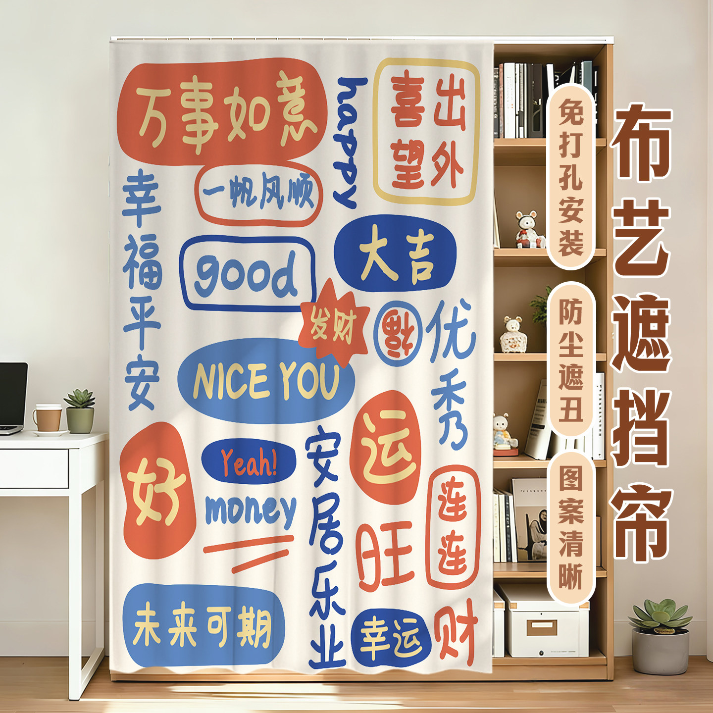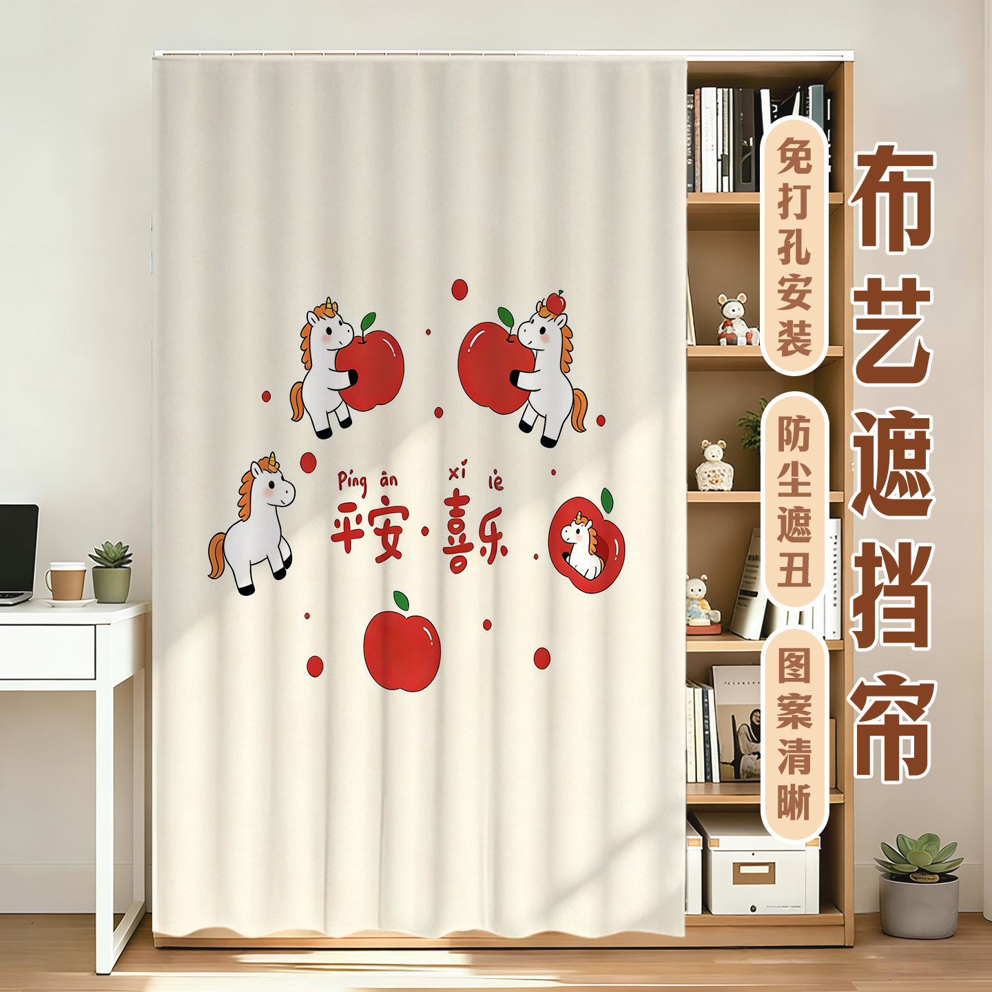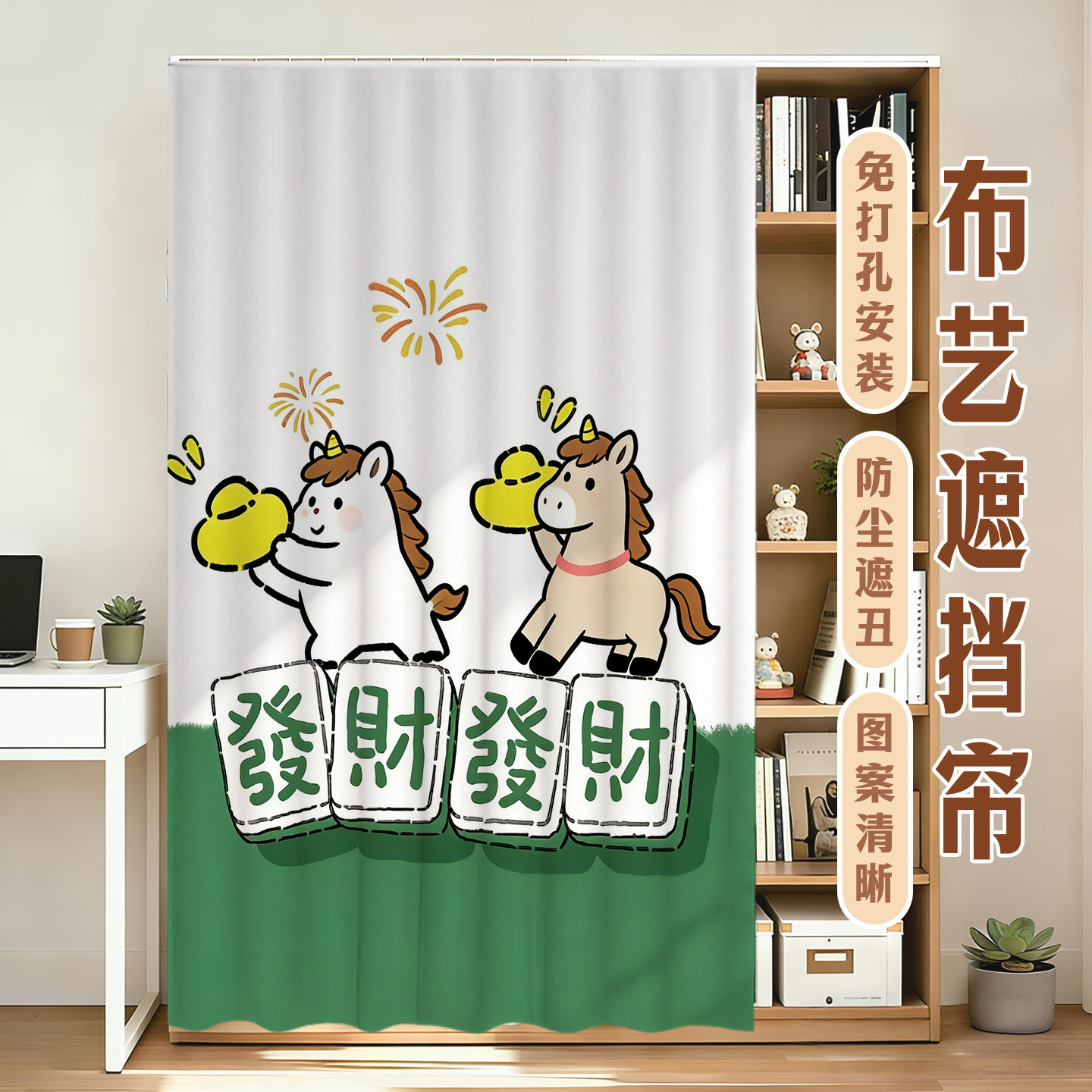 发财小马无门柜子遮挡帘衣柜门帘拉帘书柜防尘帘置物架遮丑帘定制
