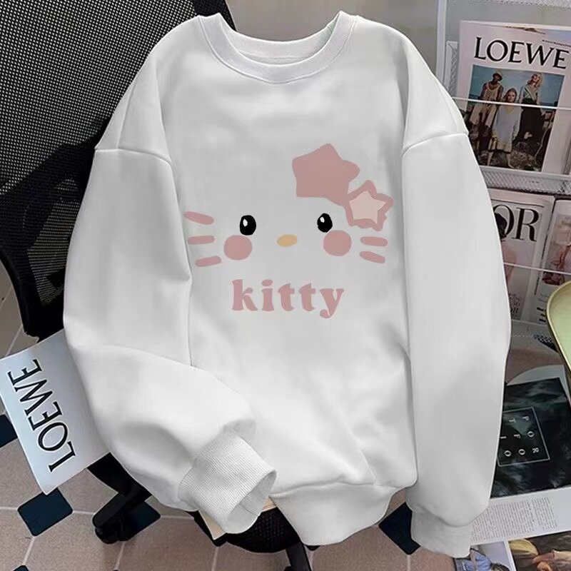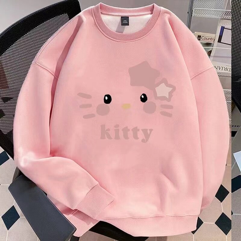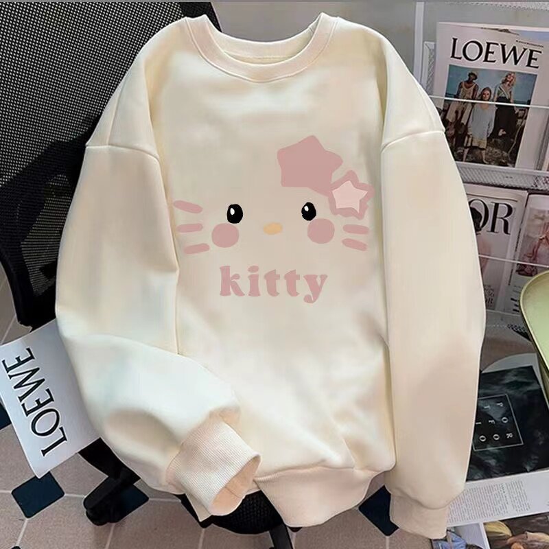 美式女童卫衣秋冬季新款加绒圆领薄款学院中大童纯棉宽松上衣潮